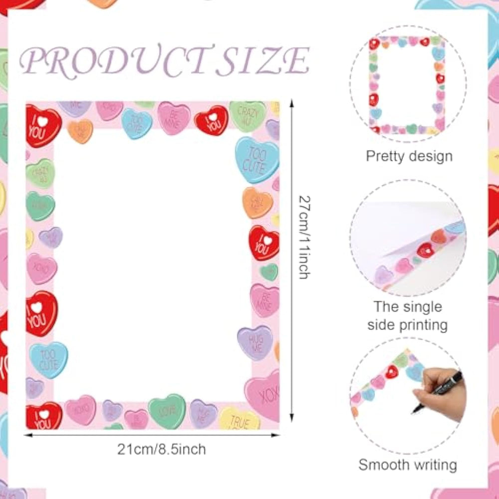 | Package Includes: 80 Sheets Single-Printed Letter Paper Are Contained In The Package, Large Quantity That Is Sufficient To Meet Your Needs For Crafts And Greetings | | Festive Design: Bordered With Colorful Conversations Hearts, Our Stationery Paper Are Quite Pretty And Fancy, Rich Of Valentine’S Day Feelings, Suitable For Various Occasions And Usages | | Proper Size: Each Sheet Is 8.5 X 11 Inch, And Leaves Enough Space For You To Write Down Your Events And Greetings, Very Thoughtful. The Size Is Measured Manually, Please Allow For Errors | | Quality Material: Our Writing Paper Is Made Of Premium Quality Paper, Smooth And Fluent To Write, And Can Be Used For Printing | | Wide Application: Perfect For Letters, Greeting Cards, Party Invitations, Office Supplies, And They Are Wonderful Letter Paper To Give Your Family, Friends, Colleagues, Etc | |