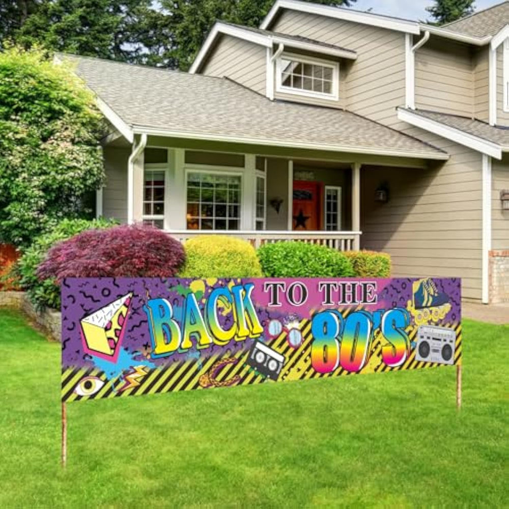 | [Proper Size] - 72.8 X 15.7 Inch, Just The Right Size, It Be Used In The 80S Theme Party Decoration, Creating A Strong Party Atmosphere, Attracting The Attention Of Neighbors And Pedestrians. [Note: Poles Or Stakes Are Not Included In The Package] | | [You Will Get] - Back To The 80’S Banner Background Decoration Supplies, Very Suitable For Decorating Your 80S Hip-Hop Style Theme Party And Hip-Hop Theme Birthday Party Decoration. | | [Retro Design] - Added Rich And Exquisite Hip-Hop Party Elements, Such As Rubik'S Cube, Tape Recorder, Roller Skates, Etc. The Design Is Retro, Unique And Interesting. | | [Easy To Assemble] - There Is A Copper Ring On The Four Corners Of The Banner. You Can Use The Included White Rope To Pass Through It, Install It And Hang It Where You Want To Decorate. Such As Hanging On The Front Door, Wall, Window, Fence, Garden, Etc. | | [High-Quality Material] - Made Of High-Quality Polyester, The Printing Is Clear And Vivid, Light Weight, Easy To Carry, And Can Be Reused. | |