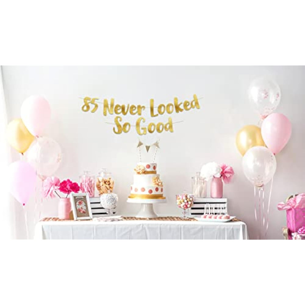 | Banner Comes Pre-Strung | | Congrats On 85 Years Of Excellence! This Gold Glitter Banner Is The Perfect Decoration To Add A Touch Of Classy Decor And Welcome Your Guests To The Occasion. | | This Banner Is Sturdy But Not Heavy And Meant To Be Reused. | | Size: Banner Is Petite And Measures Approximately 5 Feet. First Great Above A Dessert Table Or Fireplace Mantle. | |
