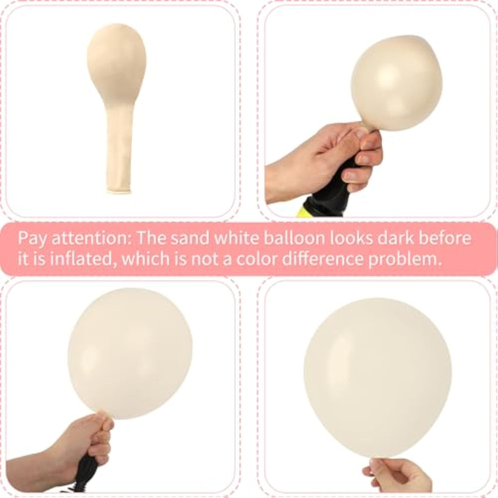 White Sand Balloons Kit: Includes 87 White Sand Balloons - 18Inch 2Pcs, 12Inch 30Pcs, 10Inch 25Pcs, 5Inch 30Pcs And 7 Pieces Of Glue, 2 Rolls Of Ribbon Of The Same Color. Four Different Sizes Of Matte White Balloons Help Shape A Perfect Wedding Balloon Arch. | Premium Quality: The Sand White Balloons Are Made Of Premium Quality Latex, Which Are Sturdy And Safe. Latex Balloons Can Be Filled With Air And Helium. Please Do Not Inflate The Balloon Too Ful, Or Rub Against Overheated And Sharp Objects To Avoid Sudden Popping. | Wide Application: Different Sizes White Sand Balloons Are Not Only Suitable For Celebratory, Anniversary Activity, Indoor And Outdoor Themed Party Garland Decorations, But Also For Festivals Decoration, Like Halloween, Thanksgiving Day, Christmas, New Years, Valentine'S Day, Mother'S Day, Father'S Day, Children'S Day Etc. | Easy To Use: It Is Equipped With Ribbon And Glue, Making The Balloons Kit Easy To Use.You Can Fully Use Your Imagination And Make Balloon Decorations Of Different Shapes. We Suggest That You Use A Balloon Pump To Blow Up Balloons, Which Is More Efficient. | Notes: There May Be Some Latex Odor When The Balloons Are Taken Out, You Can Dry It In A Shaded And Ventilated Place, And Do Not Place It In Direct Sunlight. Choking Hazard: Adult Supervision Is Required. Keep Uninflated Balloons Away From Children. |