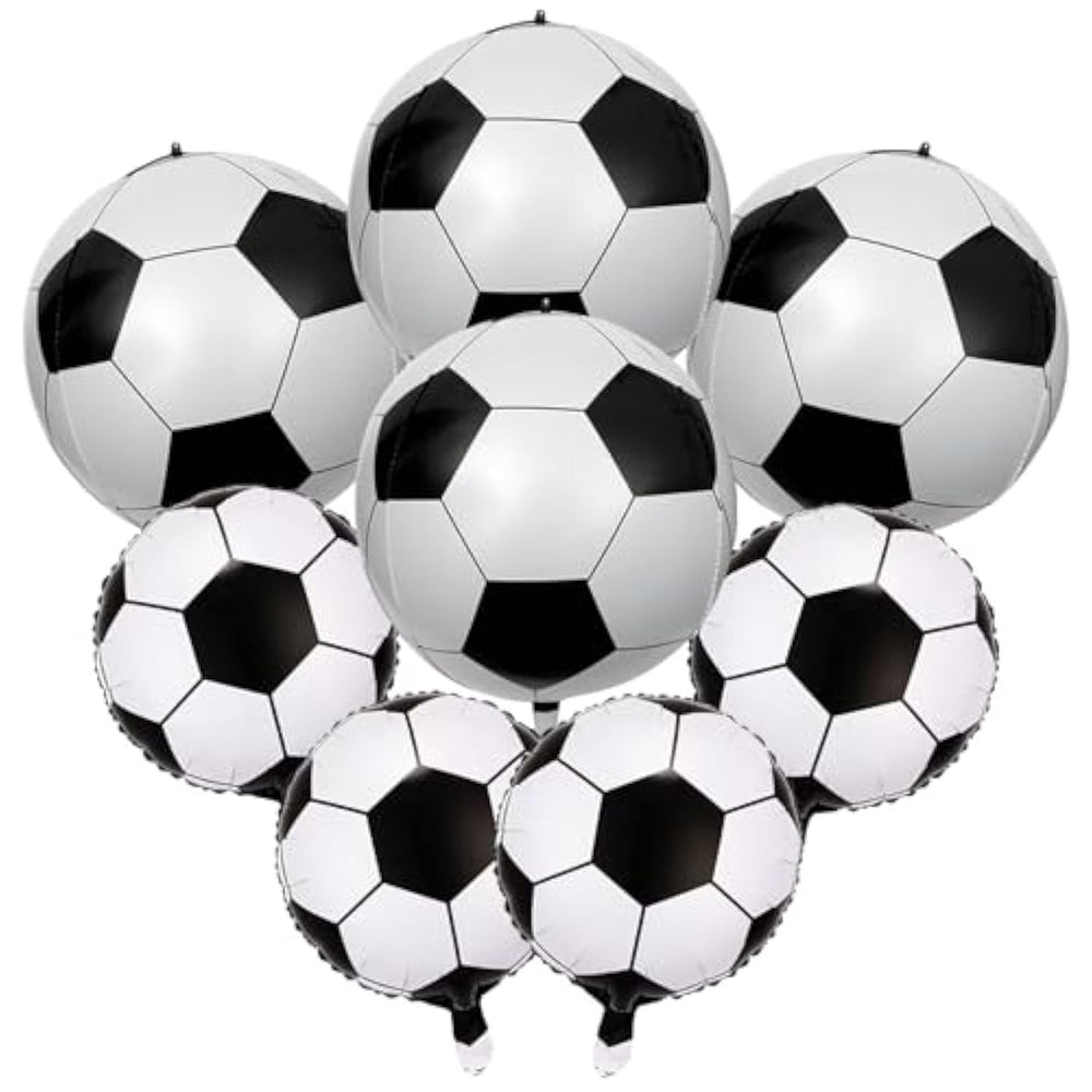 Score big at your next celebration with this 4D Soccer Ball Balloon Set! This package includes 8 high-quality aluminum foil balloons—four 22-inch and four 18-inch—complete with a straw and ribbon for easy setup. Made from durable, long-lasting material, these soccer-themed balloons are perfect for birthday parties, sports events, or any soccer fan celebration. Each balloon features a self-sealing valve for effortless inflation and can be reused after deflating, making it simple to create an unforgettable party atmosphere filled with fun and excitement.