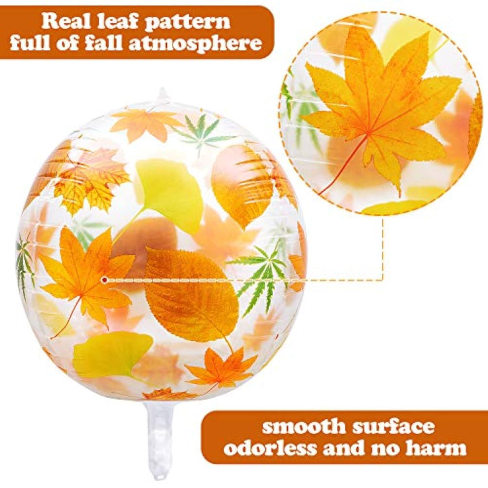 This set includes 8 autumn maple 4D balloons, ideal for creating a festive Thanksgiving atmosphere. Made from durable, odorless plastic with a smooth surface, they can be safely filled with air or helium without bursting when properly inflated. Each balloon measures about 22 inches when inflated, making them eye-catching decorations for parties, weddings, or family gatherings. Designed with realistic autumn leaf prints in vibrant orange and yellow, these balloons add a lively seasonal touch and enhance the beauty of any celebration.