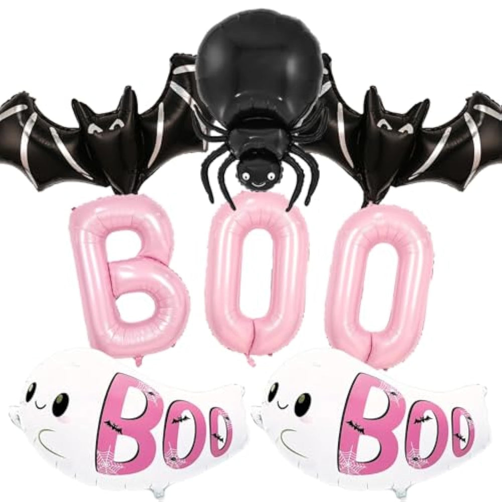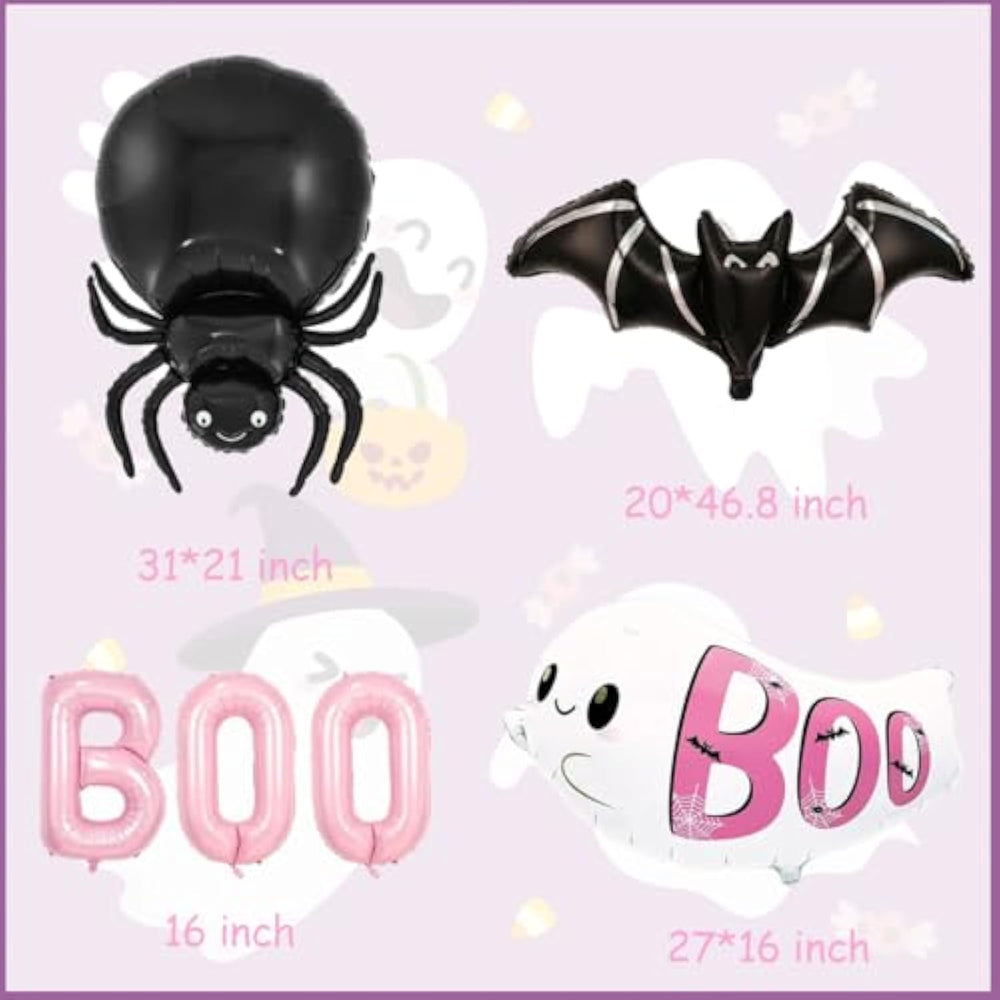 This pink Halloween balloon set offers a fun twist on traditional decorations, featuring a bright and whimsical color palette with ghost, bat, spider, and pink boo balloons, plus a ribbon for easy setup. Made from durable, tear-resistant foil, these balloons are reusable and simple to inflate with air, with a self-sealing design that keeps them inflated longer, making them a charming choice for Halloween parties or themed celebrations.