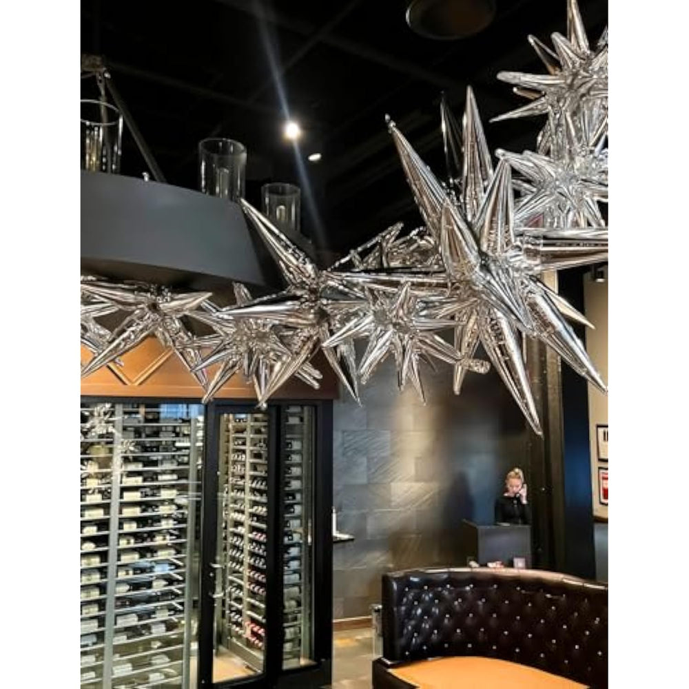 This set includes 8 silver 22-inch explosion star balloons with 1 ribbon, perfect for adding a striking touch to any party. Made from high-quality aluminum film, the balloons are shiny, sturdy, and long-lasting, maintaining their inflated shape while adding a dazzling effect. Self-sealing and easy to use, each balloon requires no assembly—simply press the tail to inflate. Ideal for birthdays, weddings, graduations, baby showers, anniversaries, New Year, Christmas, or themed celebrations, these silver star balloons can be hung, used as a backdrop, or combined with other decorations to create a memorable and eye-catching display.