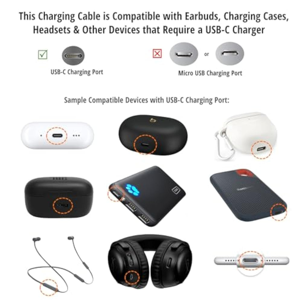 | This 9-Inch Usb C To Usb C (Usb Type C To Usb Type C) Data Charge Cable, Cord Or Wire Is Used For Charging Newly Released Earphones Headphones. This Easily Fits In Small Pockets, Bags Or Cases. This Is Compatible With New Beats Flex, Samsung Galaxy Buds, Bose, Boltune, Anker, Sony, Jabra Elite 75T 85H, Bw, Sennheiser Hd 450Bt 350Bt Momentum 3, Mpow M12, Tozo And More. | | This Short Usb-C To Usb-C Data Cable For Earbuds, Headphones, Earphones, Smartphone And More. | | This Pocket-Size 9-Inch Short Usb C Male To Usb C Male Is Ideal For Charging Your New Smartphones Tablets With A Usb C Charging Port Using A Portable Power Bank. This Is Compatible With Samsung, Lg, Google Pixel, Oneplus, Motorola Moto Other Smartphone Or Tablets With A Usb Type Charging Port. | | This 9-Inch Short Usb-C Male To Usb-C Male Can Be Used To Charge Newly Release Powerbanks, Power Banks Or Rechargeable Battery Packs. This Is Compatible With Spigen Pocketboost, Iniu, T-Core, Anker Usb-C, Anker Powercore, Bonai, Aukey, Miady, Samsung, Bsyyo And Other Portable Powerbanks With A Usb C Type C Input Charging Port. | | : We Understand That Finding The Correct Cable For Your Electronic Device Is Confusing. If This Cable Is Not Compatible With Your Device Or If You Purchased This In Error,