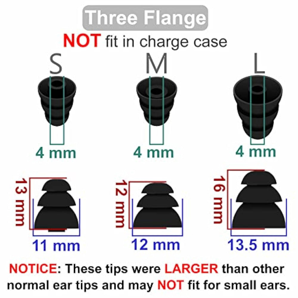 | ? Compatibility ? Not Fit In Charge Case, Compatible With Beats Fit Pro / Studio Buds + / Powerbeats Pro / Flex, Compatible With Sony Wf-1000Xm5 / Wf-1000Xm4 / Wf-1000Xm3 / Wf-C700N / Wf-C500 / Xba / Mdr / Dr Series, Compatible With Senso Headphones, Compatible With Anker Soundbuds Slim+ / Curve, Compatible With Skullcandy Earphone, Compatible With Sennheiser Earphone, Compatible With Panasonic In-Ear Headphones, Compatible With Most Other Inner Hole From 4Mm To 5Mm In-Ear Headphones. | | ? Improved Sound Quality ? Unique Triple Flange Design Offer A Good Seal To Reduce Some Of The Outside Noise And Allow You To Focus On Your Audio, Provide A Better Sound Listening Experience. | | ? Material ? Made Of Soft Flexible Premium Silicone, Provide More Noise Isolation, In-Ear Stability And A Lasting Comfort. And They Are Water-Washable, Durable, Flexible, Removable And Replaceable. | | ? More Size Options, Better Fit ? Small Medium Large 3 Different Sizes, Complies Comfortably With Your Individual Ear Shape. | | ? Package Include ? 9 Pairs Three Flange Replacement Ear Tips, Tips Only, Earphone Not Include. | |