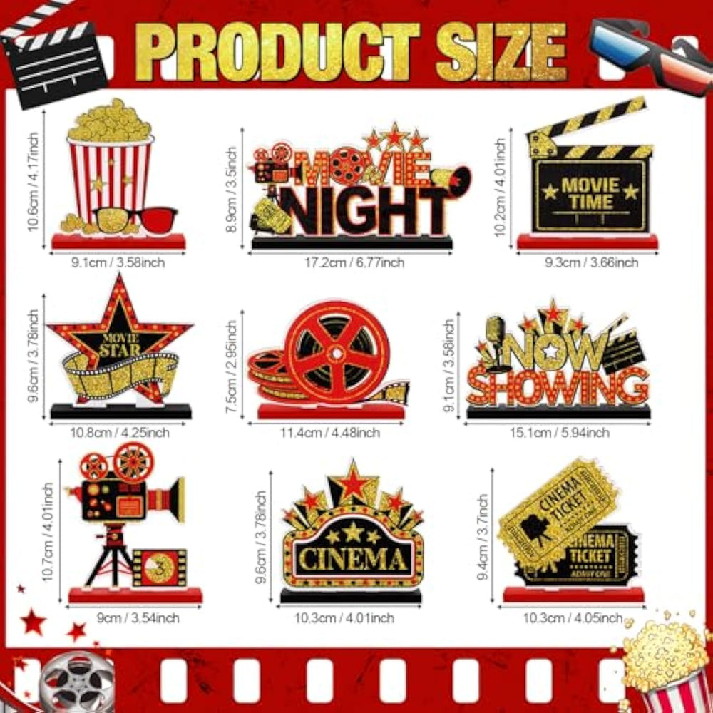 | Light Up Movie Night Party: You Will Get 9 Pieces Of Movie Night Party Decorations, Each Radiating A Different Personality, Its Exquisite Design And Vivid Shape Are Full Of A Strong Sense Of Movie, Which Can Bring A Pleasant Atmosphere To Your Movie Party And Make It A Big Hit | | Movie Theme Design: Our Movie Wooden Table Decorations Are Specially Designed With Different Styles, Such As Movie Stars, Popcorn, Tickets, Projectors, [Now Showing] And [Movie Time] Signs, Etc. Exquisite And Eye-Catching, It Can Add Charm To Your Movie Party And Bring Good Visual Effects | | Quality Wood Material: These Movie Table Centerpieces Are Made Of Quality Wood Material, Which Is Sturdy And Durable, Smooth And Not Easy To Break, And Colorfully Painted To Ensure That The Patterns And Texts Of The Movie Decorations Are Clear, Not Easy To Fade, And Can Release The Movie Atmosphere For A Long Time, Bringing You A Good Mood | | Easy To Assemble: The Movie Night Table Signs Have A Separate Base And Wooden Decorations, Just Insert The Wooden Tabletop Into The Slot Of The Wooden Base To Install; They Are Easy To Operate And Not Easy To Loosen After Installation, Will Offer You A Comfortable Using Experience | | Wide Application: These Movie Theme Party Supplies Full Of Movie Elements Are Especially Suitable For Movie Birthday Parties, Celebrating Awards Night Party, Proms, Homecoming Parties, Bachelorette Parties, Graduation Or Other Themed Parties, Will Leave A Deep Impression On Your Guests And Family Members | |