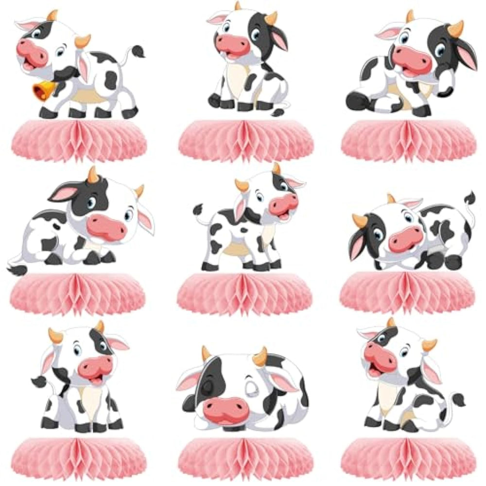 | Package Included: You Will Obtain 9 Sets Of Monster Cow Honeycomb Centerpieces, Including 9 Different Cow Cards, 18 Pieces Honeycomb Bases. These Cow Print Birthday Table Decorations Are So Chic And Funny That Make Your Theme Party A Big Hit. | | Product Size: The Size Of The Card Is Different, The Largest Size Is 6.3 X 6.6 In. Add Some Atmosphere By Setting These Farm Animal Decorations For The Birthday Party In The Middle Of The Table And These Cool Cow ?Decorations Are Impressive Enough To Be Noticed. | | Quality Material: The Cow Print Centerpiece Is Made Of Quality Card Paper, Adopt Quality Digital Print Which Will Make It Seamless, Durable, Lightweight And Non-Fading; The Honeycomb Is Made Of Choice Paper, Non-Fading. | | Easy To Assemble: Just Tear Out The Glue Dot Sticker On The Back Of The Honeycomb, Unfold The Honeycomb Ball, And Stick On The Card-Stock Pattern, You Can Get A Lovely Honeycomb Ornament. And They Are Easy To Assemble And Disassemble, Also Easy To Carry And Store, Saving Time And Effort For Installation Process. | | Suitable Occasions: The Cow Themed Birthday Party Supplies Are Ideal For Farm Party Decorations, Birthday Party, Baby Shower And Farmer Summer Events. They Are So Funny And Cute That Can Easily Impress Your Families, Friends And Bring Your Party To Life. | |