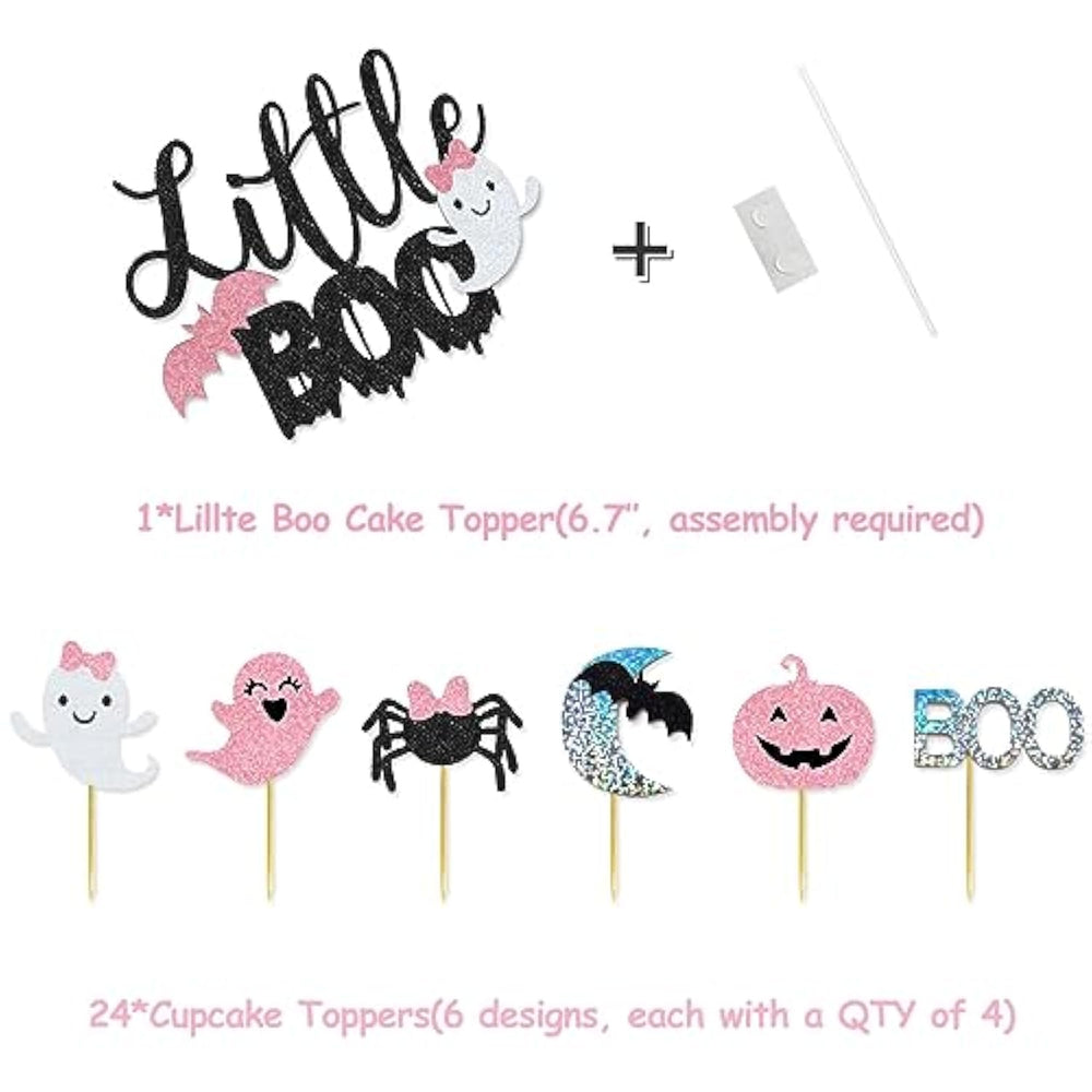 High Purity Helium Would Be Needed If You Want The Bat And Skeleton Mylar Balloon To Float As They'Re Quite Irregular-Shaped; Otherwise, Do'T Fill Them With Helium In Case Money Wasted. | Package Includes: 1 Pc Little Boo Glitter Banner, 1 Pc Little Boo Cake Topper, 1 Pc Moon Bat Ghost Star Garland, 5 Pcs Mylar Balloons, 60 Pcs Latex Balloons 24 Pcs Cupcake Toppers. | Assembly Required - Pls First Take Some Time To Assemble The Banner Cake Topper, Strings Plastic Needle, Stick Glue Spots Are Included For Convenient Assembly. | Pls Note That There'S Talcum Powder On And In Latex Balloons To Stop Them Sticking Together. It'S Not Dust Or Dirt. |