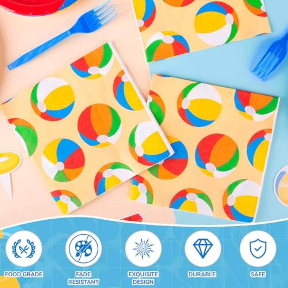 | Vibrant Beach Ball Design?: The Pool Party Tableware Features Bold, Multicolored Geometric Designs Inspired By Classic Inflatable Beach Balls, Instantly Evoking A Playful Summer Party Atmosphere. These Pool Party Paper Plates Are Perfect Gifts, And The Perfect Complement To Your Beach Themed Birthday Party Decorations | | Complete Beach Ball Party Tableware Set: Summer Pool Party Tableware Set Includes 24 Dinner Plates, 24 Dessert Plates, 24 Napkins, And 24 Forks. Enough Quantity And Plenty Of Style For Your Party Needs. Accommodates Up To 24 Guests | | High Quality: All Our Summer Paper Plates And Napkins Sets Are Made Of High Quality Paper, Non-Toxic, Odor Free, Heat Resistant And Durable. The Forks Will Not Bend, Break. Bright Color, High-Grade Feeling, Our Pool Party Decorations Plates Are Perfect For Holding Up Favorite Meals And Snacks. You Can Use These Party Supplies With Ease | | Beach Ball Print Party Tableware Set: Ultimate Versatility For Any Celebration?. This 96-Piece Set Effortlessly Adapts To: Pool Parties, Beach Bbqs, Summer Party, Picnics, Making Them Perfect For A Summer Beach Pool Baby Shower Or Pool Birthday Party And More, Especially Better For Beach Summer Parties | | We Are Always Ready To Help: We Are Very Confident In The Quality Of Our Beach Ball Plates Supplies Because We Use High Quality Materials To Make Them, So You Can Buy With Confidence. We Are Committed To A Better Shopping Experience For Our
