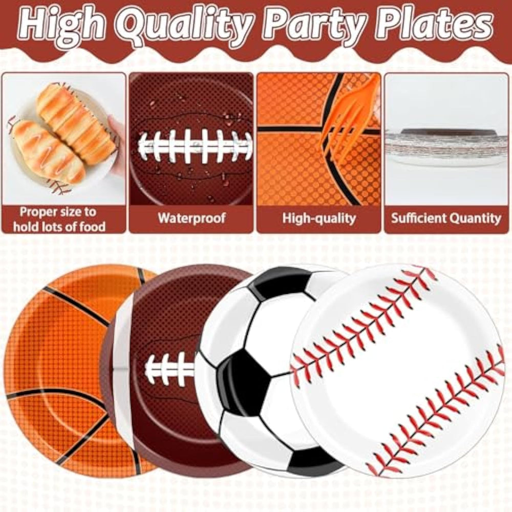 | Package Content: Total 96Pcs You Will Receive, Serves Up To 48Pcs 7 Inch Sports Themed Party Dinner Plates, 48Pcs 6.5 Inch Sports Napkins All In 4 Styles, Ensures That You Have Everything You Need To Create A Great Atmosphere That Will Leave A Lasting Impression. | | Sports Design: These Fresh And Adorable Sports Birthday Party Decorations, Featuring Some Ball Sports Patterns, Like Basketball, Football, Baseball, Rugby, Will Instantly Captivate And Delight Sports Themed Birthday Party Guests Of All Ages. | | Premium Quality: These Sports Party Paper Supplies For Birthday Are Durable And Reliable. This Sports Plate Tableware Set Is Designed To Hold Up A Variety Of Foods Without Leaking, Well-Printed, And Avoid Fading Embarrassment. | | Convenient To Use: These Sports Themed Party Plates Napkins Can Rescue Your Hands From Dishwashing Duty. You Can Simply Throw These Sports Party Plates And Napkins Out When Making Cleaning Up After The Sports Themed Party, So You Can Enjoy More Time With Friends And Family. | | Wide Applications: Whether It'S A Sports Themed Birthday Party, Birthday Party Or Baby Shower Party, These Sports Themed Party Favors Effortlessly Adapt To Different Settings, Making It A Ideal Choice For Versatile Party Decor. | |