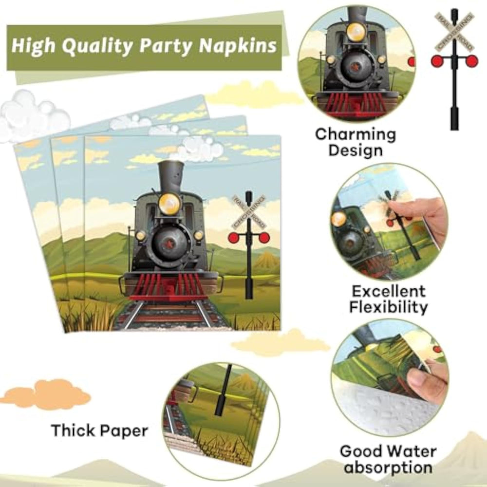 | Package Contents: This Train Birthday Party Supplies Comprises 24 Pieces Of Train Dinner Plates, 24 Pieces Of Steam Train Party Dessert Plates, 24 Pieces Of Forks, And 24 Pieces Of Retro Train Party Napkins, Providing Everything You Need To Set The Stage For A Memorable And Fun-Filled Celebration. Ideal For Train-Themed Parties, Baby Showers, Or Birthday Celebrations. | | Train Design: Our Steam Train Birthday Party Decorations Feature High-Quality Printing Of Retro Steam Trains, Scenic Railway Backdrops, And Crossing Signals, Immersing Guests In An