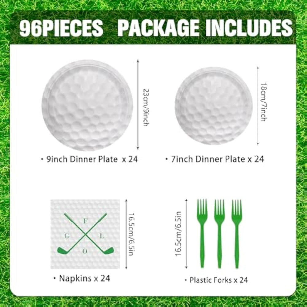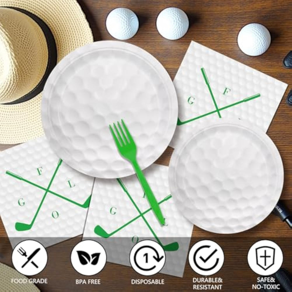 | [Golf Party Supplies] : You Will Receive 24 Dinner Paper Plates (9 Inches),24Dessert Paper Plates (7 Inches), 24 Napkins,24 Forks,Making Party Preparation Effortless. | | [High Quality Material] : These Golf Birthday Party Plates And Napkins Are Made Of High Quality Materials,Water-Resistant And Oil-Resistant,Durable,And The Printed Pattern Is True And Does Not Fade,Which Can Accommodate All Kinds Of Food And Provide You With Colorful Theme Parties. | | [Easy Clean-Up Convenience] : After Your Event,Simply Dispose Of The Plates,Napkins,And Forks β No Need For Cleanup Or Washing Dishes.Spend More Time Enjoying The Party With Your Guests While The Convenience Of This Disposable Set Handles The Rest. | | [Charming Golf Design] : The Unique Golf Design, In Soft Pastel Hues Of Green, Brings A Gentle, Golf Charm To Your Party Setting. The Vibrant Yet Delicate Illustrations Are Sure To Captivate Your Guests And Add A Playful, Nature-Inspired Atmosphere To Your Event. | | [