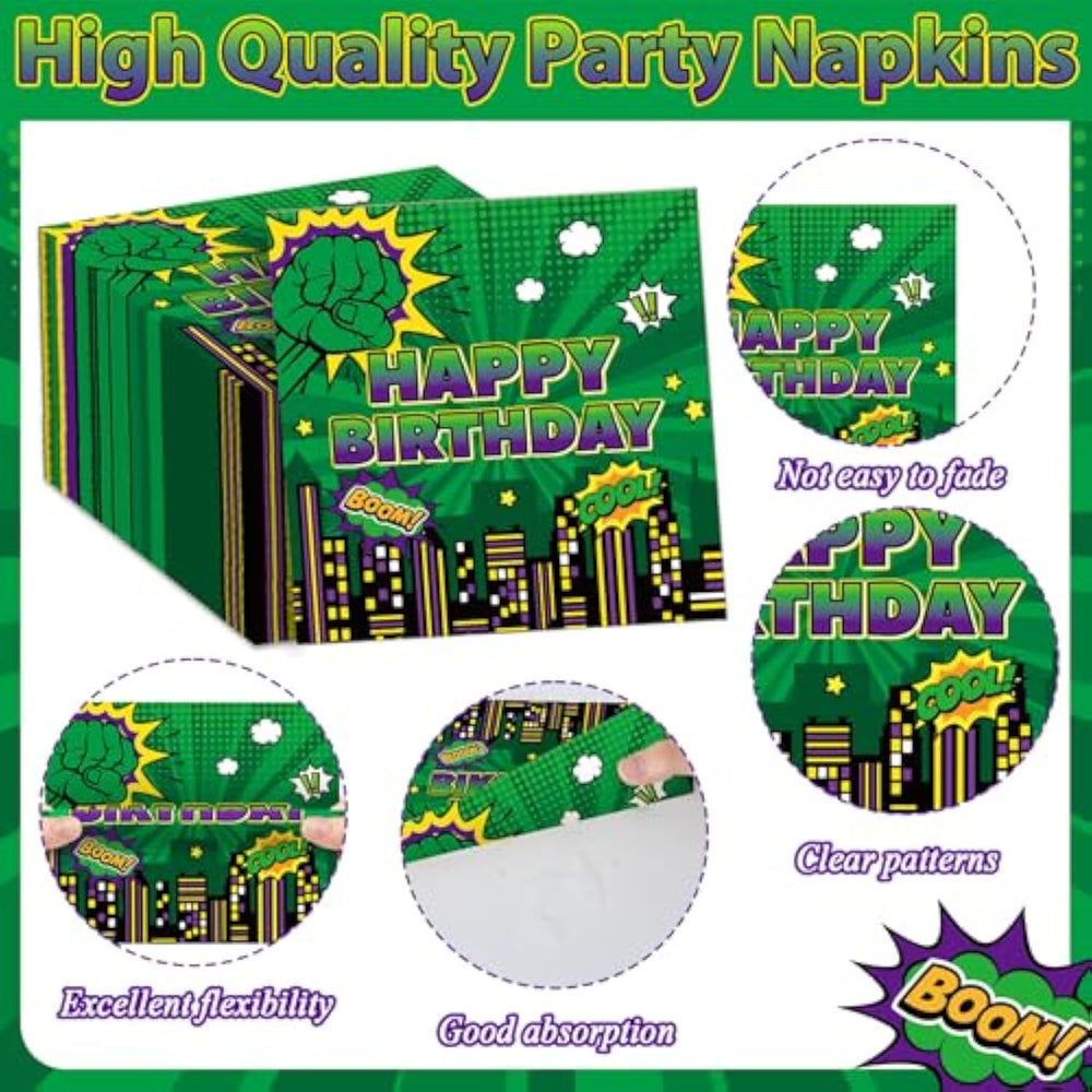 | Package Includes: You'Ll Get 24Pcs Of Super Green Hero Party Plates Of 9In, 24Pcs Of Super Green Hero Party Plates Of 7In, 24Pcs Of Cartoon Hero Theme Napkins Of 6.5In, And 24 Pieces Of Green Plastic Forks For Each Set That Can Serve 24 Guests, Creating A Visually Stunning Table Decor For Your Party. | | Eye-Catching Design: This Cartoon Theme Happy Birthday Party Tableware Features A Bold Green Backdrop With Dynamic City Silhouettes And Stylized Fist Motifs. Playful Stars Are Scattered Throughout The Design, Accented With Cheerful 'Happy Birthday', Energetic 'Boom!', And Stylish 'Cool!' Text. Setting The Stage For The Green Hero Party Plates Napkins, It Lets Every Child Imagine Becoming The Hero Of Their Own Thrilling Adventure! | | Premium Material: All Of Our Green Hero Birthday Party Supplies Are Made Of High-Quality Paper That Is Odorless, Heat-Resistant, And Sturdy. The Double Napkins Are Of Good Quality, Soft, And Not Easy To Break, And The Forks Are Also Durable And High-Quality Plastic. | | Save Your Time: These Disposable Green Hero Party Decorations Can Be Conveniently Thrown Away After Use, Eliminating The Need For Dishwashing. After The Party, You’ Ll Have More Time To Relax And Enjoy With Family And Friends, Reducing The Time Spent On Cleanup. | | Wide Application: These Hero Party Decorations Tableware Is An Ideal For All Occasions. Use Them For Kids Birthday Party, Super Baby Shower Party, Boys Birthday Party, Super Themed Birthday Parties, And Hero Movie Party. They Also Can Fit Well With Other Cartoon Anime Party Decoration, Like Tablecloth, Backdrop, Banner, Adding A Funny And Inviting Vibe To Your Table Decor. | |