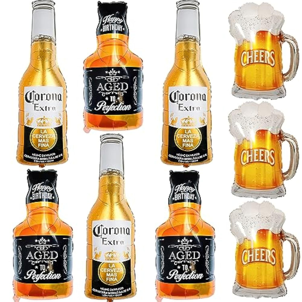 Elevate your party with this Beer and Whiskey Balloon Set, perfect for birthdays, beer festivals, summer parties, anniversaries, and more. The set includes 3 × 37-inch whiskey balloons, 3 × 29-inch beer mug balloons, and 3 × 36-inch Corona balloons, creating a fun and festive atmosphere. Made from premium aluminum foil, these balloons are thick, self-sealing, and long-lasting, with uniform color and high durability. For best results, inflate to about 90% to avoid bursting. Ideal for gifting or decorating, these balloons bring a lively and memorable touch to any celebration.