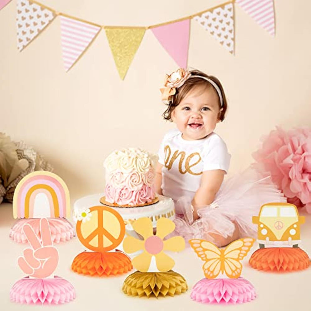 You will receive 9 groovy honeycomb centerpieces in various retro boho designs, including rainbows, daisies, butterflies, and peace signs, along with an assembly guide. Made from thick double-sided cardstock with high-definition printing, these decorations are non-toxic, durable, and resistant to fading. Assembly is simple—just peel the sticker, attach the honeycomb ball to the designated area on both sides, and place it wherever you like. Perfect for 60s hippie parties, teen birthdays, boho baby showers, and photo booth props, these decorations add a fun and vibrant touch to any space, including windows, tables, and living rooms, making your event unforgettable.