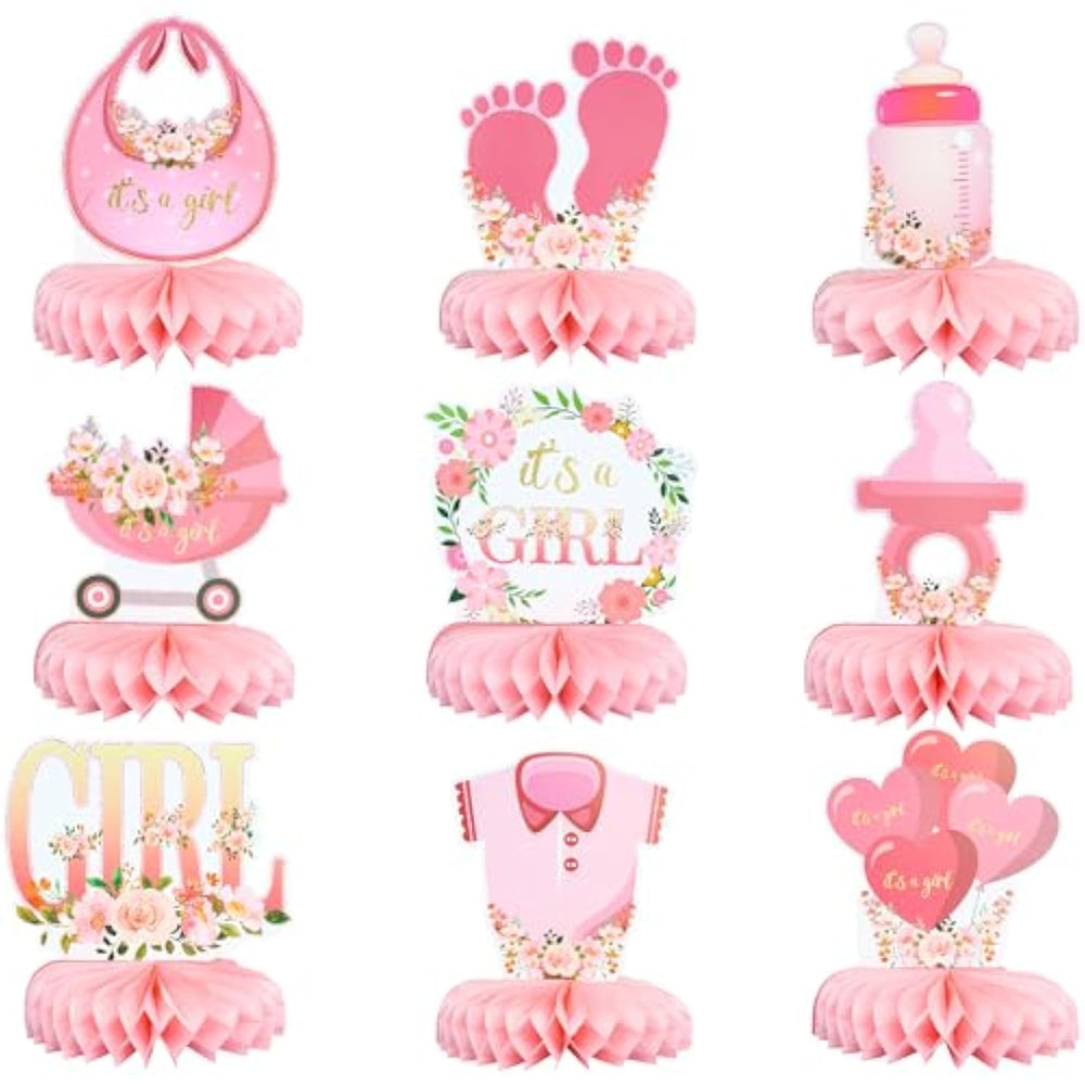 The package includes 9 baby shower honeycomb centerpieces, each featuring adorable patterns that bring a fresh and vibrant visual experience to your celebration. Made from 300-gram double-sided cardstock, these centerpieces are durable, resistant to deformation and fading, and feature smooth edges without burrs. They shine beautifully in the light, adding a festive atmosphere to your event and capturing everyone's attention. Perfect for both boy and girl baby showers, these cute centerpieces are ideal for decorating cupcakes and enhancing the fun and charm of your party.