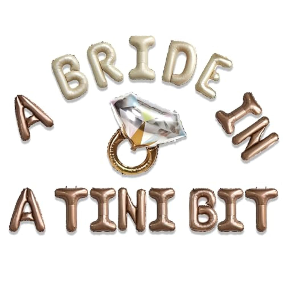 | Party Decoration Set: Features 'A Bride In A Tini Bit' Text In Elegant Coffee And Cream Color Letter Balloons With A Diamond Ring Accent | | Balloon Dimensions: Each Letter Balloon Measures Approximately 16 Inches Tall, Perfect For Creating An Eye-Catching Party Display | | Dual-Color Design: Combines Sophisticated Silver And Rose Gold Foil Balloons For An Elegant Espresso-Themed Celebration Aesthetic | | Easy Assembly: Includes Self-Sealing Balloons With Built-In Tabs For Convenient Inflation And Hanging | | Celebration Ready: Perfect For Bachelorette Parties, Bridal Showers, And Pre-Wedding Celebrations With A Fun Cocktail Theme | |