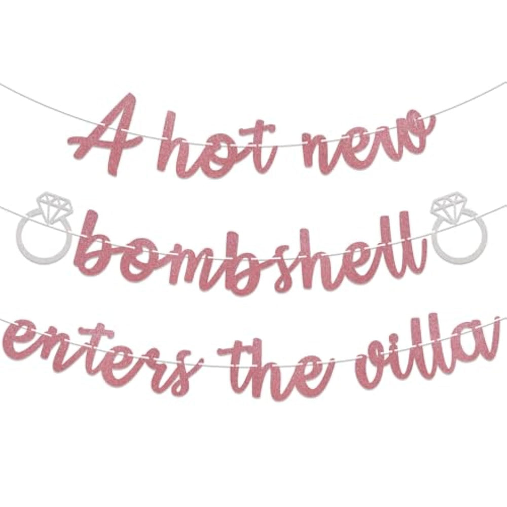 | Material: Eco-Friendly Paper, Surface-Attached Glitter, Perfect For A Bachelorette Bride To Be Party. | | This Rose Gold Glitter A Hot New Bombshell Enters The Villa Bunting Decorations, Bachelorette/Bride To Be Party Supplies, A Big Hit For Your Party. | | This Banner Is So Suitable For Bride To Be Party, Bachelorette Decorations ,Wedding, Photo Studio, Etc. Perfect For Your Bachelorette Bridal Shower Party Decorations. | | Pre-Strung: The Glitter A Hot New Bombshell Enters The Villa Banner You Receive Is Already Strung On A 6-Foot String, So All You Have To Do Is Hang It Up And Get Your Party Started! | | Unique Design: Meticulously Hand Designed, We Made Sure Our Gold Glitter A Hot New Bombshell Enters The Villa Banners Were Super Premium And One-Of-A-Kind. Perfect For Your Wedding Party And Will Set Your Wedding Celebration Apart Too! | |