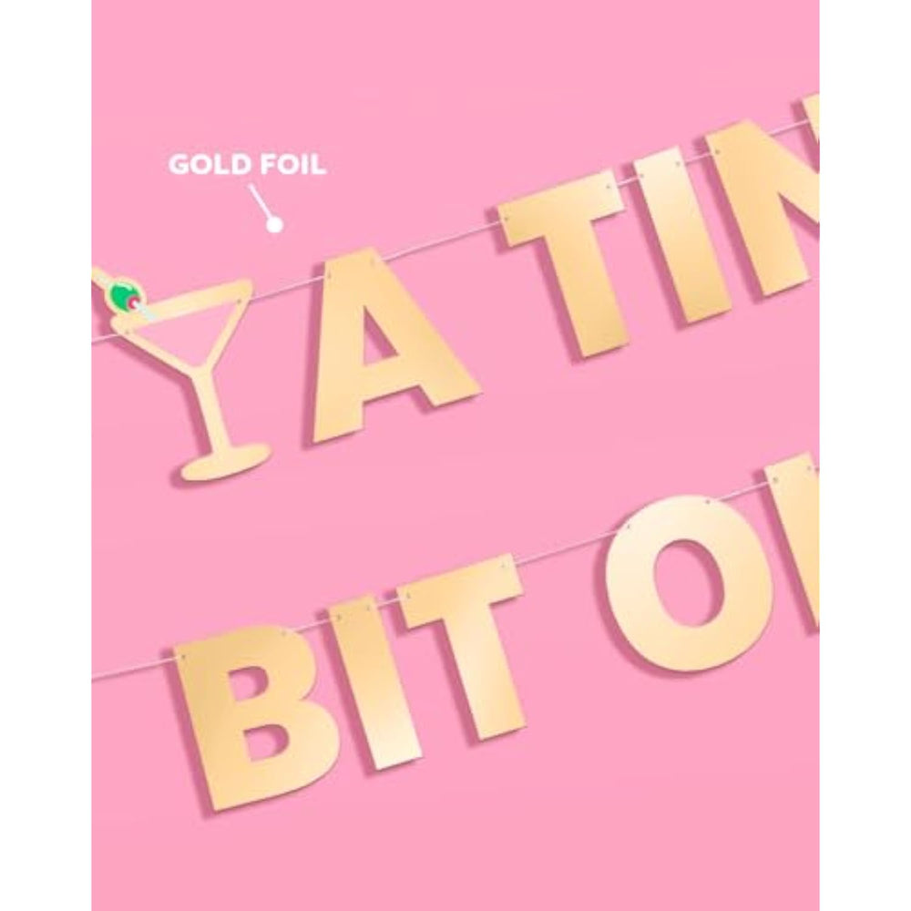 | Shake It Up: Our Gold Foil Banner Spells Out "A Tini Bit Older" With Two Martini Icons And Is The Party Addition You'Ve Been Looking For + A Hit! | | Foil Details: Each Banner Features A Foil Paper Finish - Think Super Fun + Cute! | | Ready To Party: This Banner Is Pre-Strung On Two Gold Strings And Ready For Action! | | Size: Each Set Comes A Banner That Spans 5 Feet With An Additional 6 Inches Of String Each Side! | |