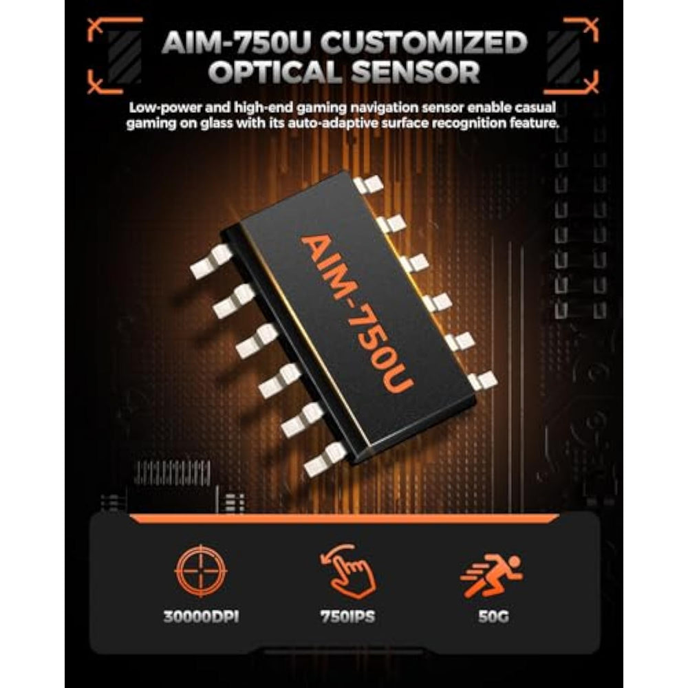 | 4K/8K Polling Rate Gaming Mouse-Wireless 4Khz Polling Rate With The Latest Patented Wireless Technology For Low Latency, Low Power Consumption, High Speed, And Interference Immunity. The 8Khz Polling Rate In Wired Mode Ensures Maximum Performance Without Power-Saving Worries: The Real-Time Precision Of Up To 8000 Data Reports Per Second, Delivering Instantaneous Response Times And Pixel-Perfect Tracking For The Ultimate Gaming Experience. | | Aim-750U 30K Optical Sensor-Sensor Of The Wireless Gaming Mouse Features Auto-Adaptive Technology That Automati