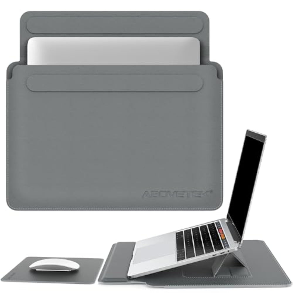 | Ultimate Ergonomic Workstation: Transform your workspace anywhere with this versatile laptop sleeve case with stand. Our 2-in-1 laptop sleeve bag easily converts into an ergonomic laptop sleeve stand featuring a unique built-in wrist cushion and two adjustable angles (15°/35°) to significantly reduce neck, back, and wrist strain for enhanced comfort and productivity on the go. | | Premium Durable Protection: Safeguard your device with our sophisticated grey leather laptop sleeve, meticulously crafted from high-quality, scratch-resistant, and water-repellent PVC leather. This protective laptop sleeve offers robust defense for 13-14 inch laptops, establishing itself as a top-tier choice among premium slim laptop sleeves for lasting durability. | | Optimized for Mobile Professionals: Designed for peak performance, this lightweight macbook sleeve is the perfect journey laptop sleeve for on-the-go professionals. Its innovative open-back design promotes superior airflow for efficient laptop cooling, making this an essential macbook carrying case that keeps your device running smoothly during your busiest days | | Sleek Multi-Device Versatility: More than just a leather macbook sleeve, this grey protector elegantly fits most 13-14 inch laptops, tablets, and e-readers. Its refined, minimalist aesthetic evokes a chic envelope laptop sleeve, providing sleek, reliable protection and style for a range of your essential portable electronic devices, ensuring you travel smart. | | On-The-Go Convenience Redefined: Maximize your mobile efficiency with the AboveTEK laptop sleeve case with stand. This innovative laptop sleeve bag is engineered for convenience, featuring its integrated stand, ergonomic wrist support, and cooling open-back design, making it the definitive solution for professionals seeking comfort and function anywhere. | |