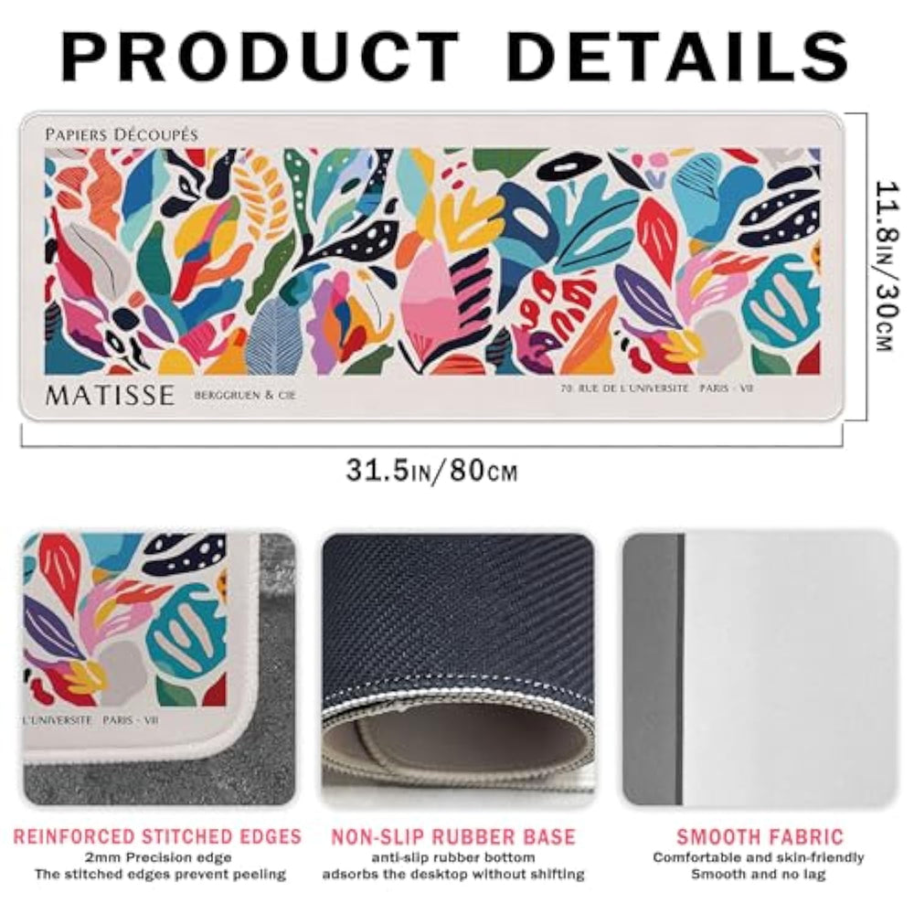 | Extra-Large Size (31.5" X 11.8" X 0.08"): This Long Desk Mat Can Fits Your Mouse, Keyboard, And Even A Notebook! No More Sliding Or Crowding—Just Smooth Moves For Work Or Gaming | | Non-Slip Rubber Base Smooth Surface: Stays Firmly In Place During Intense Sessions! The Slick Top Lets Your Mouse Glide Like Butter, While The Rubber Grip Prevents Annoying Slips | | Reinforced Stitched Edges: Built To Last! Double-Stitching Keeps Edges From Fraying, So This Mat Handles Daily Wear And Tear Like A Champ | | Choice For Desktop Aesthetics: Matches Any Setup—Whether You’Re Going For Rustic, Modern, Or Gamer Style. Plus, It’S Easy To Clean With A Quick Wipe | | Perfect Gift Trendy Desk Decor: Level Up Your Workspace With This Stylish Mouse Pad! Its Design Adds A Cool Vibe To Any Desk To Be An Aesthetic Desk Decor, Making It A Hot Gift For Gamers, Students, Home Or Office Lovers | |