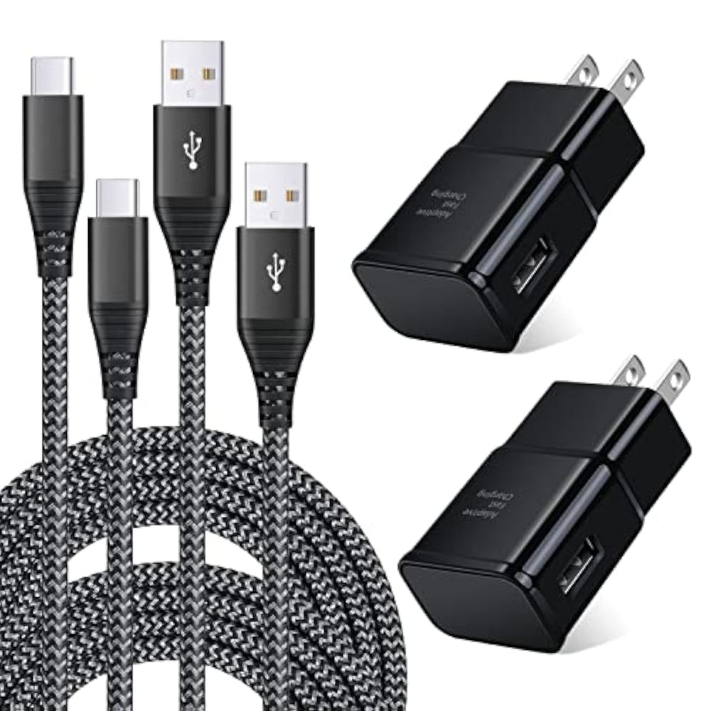 | ?Adaptive Fast Charging Block?: Adaptive Fast Charger Supports Fast Charging For Samsung Phones, Quick Charger 3.0/2.0 And Afc Compatible Devices. Charge Your Phone To 50% Battery Level With Just 30 Minutes, Much Faster Than Standard Charger Block. Save Much Time For Charging On Daily Use Or Travel, Especially When Your Are In Hurry. | | ?Sturdy 6Ft Usb C Cord?: Come With 2 Pack 6 Feet Nylon Braided Usb C Cable, You Can Easily Get One No Matter At Home Or Office, And No Need To Worry The Charging Cord Not Compatible With Your Charging Box. The Perfect Length Of 6 Feet Enables You To Lie On Your Bed Or Sit On The Couch While Charging, No Tangled. The Metallic Housing Connectors Design Can Bear 1000+ Bending Test, Which Largely Extend The Lifespan Of The Usb C Charging Cable. | | ?Comprehensive Safety?: The Fast Charging Adapter Can Smartly Recognize Connected Device To Deliver The Optimal Charging Current At Up To 2Amp And Automati