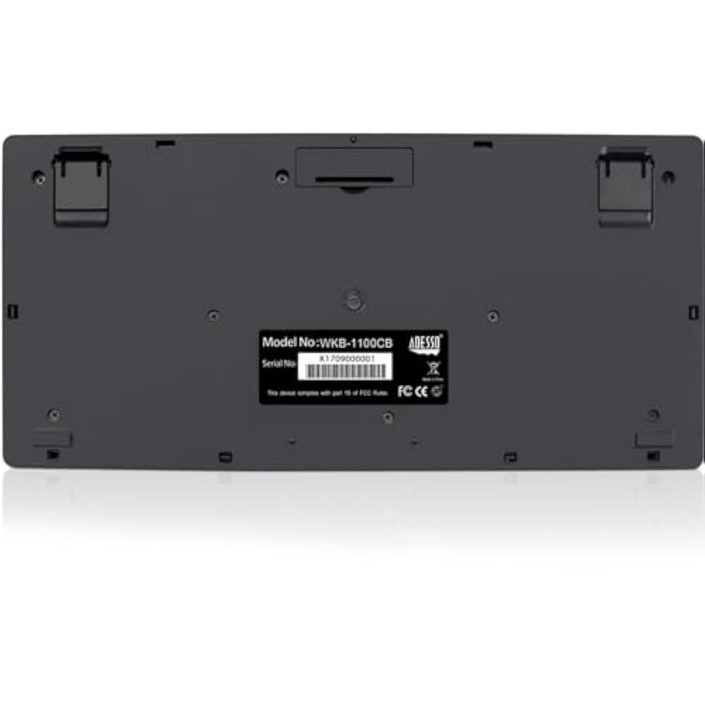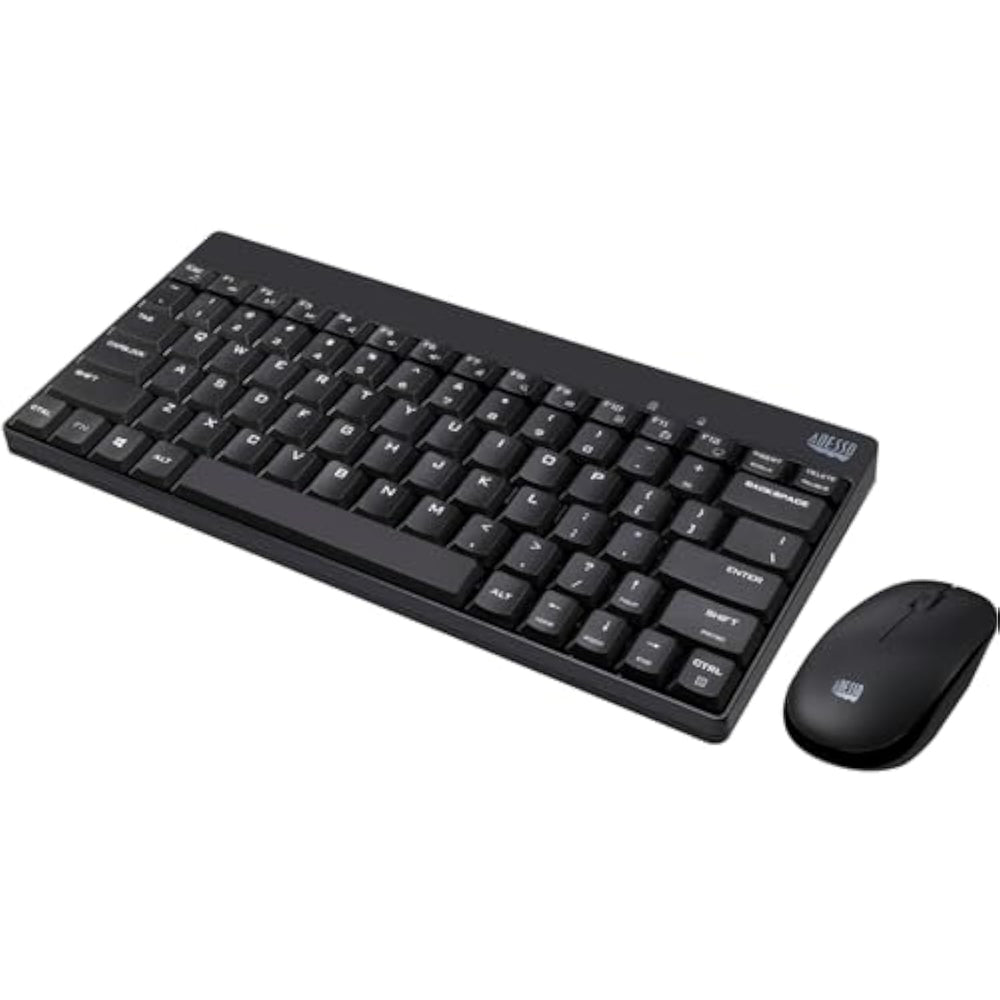 | This Keyboard and mouse work at any angle with a range of up to 30 ft. with no wires to get tangled | | The keyboard's spill resistant design helps to prevent fluids from staying inside, which would otherwise cause damage to the keyboard | | Membrane key switches provide a better responsive and quieter typing experience lasting up to five million keystrokes | | Enhanced Optical Sensor - Tracks accurately and precisely on different surfaces, like marble, wood and leather surfaces. | | Compact and Portable - Ultimate space saver and easy-to-carry on the go. | |