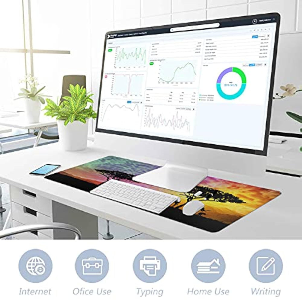 | ?Protect Your Desk?The Surface Of The Large Mouse Pad Is Made Of Durable Mutispandex Material, Which Protects Your Desk From Scratches, Stains, Spills, Heat And Scuffs. It Also Gives Your Office A Modern Atmosphere When You Put It On Your Desktop. Its Smooth Surface Will Make You Enjoy Writing, Typing And Browsing. It Is Perfect For Both Office And Home. | | ?Multifunctional Desk Pad?31.5 X 15.7 X 0.12 Inch Size Is Large Enough To Accommo Your Laptop, Mouse And Keyboard. Its Comfortable And Smooth Surface Can Be Work As A Mouse Pad,Desk Mat,Desk Blotters And Writing Pad. | | ?Highly Durable?The Edge Of The Mouse Pad Using Precision Locking Process, Ensures It Doesn'T Fray Or Fall Apart Or No Cracklike Other Mouse Pads.Smooth Surface Designed For Optical Mice, No Skipping, Ensures Fast Smooth Movement While Maintaining Speed And Control During Gaming,It Improves Tracking Mouse Movements, Great For Big Screens. | | ?Non-Slip Rubber Base?The Soft And Dense Non-Skid Nature Rubber Base Keeps This Desk Pad Firmly In Place. This Large Mouse Mat Remains Uniformly Flat Even Over Imperfect Surfaces. Just Immerse Into Your Work Or Games Without Worrying About The Annoying Mouse Pad Movement. | | ?Easy To Clean?A Spill-Proof Coating Makes Liquids Slide Right Off The Surface. Effectively Prevent Damage From Spilled Drinks Or Other Accidents. It Is Easy To Wipe Clean With A Piece Of Wet Cloth, And Job Done. | |