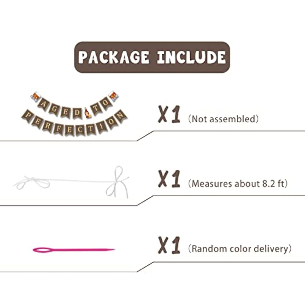 | Perfect Size - Each Flag Measures 5.9 X 6.7 Inches, Not Too Large Nor Too Small. You Can Adjust The Space Between Each Flag To Fit Any Wall, Doorway, Or Staircase. | | High Quality - Banners Are Made Of High-Quality Cardstock, Eco-Friendly Material, And One-Sided Printing. Sturdy And Reusable, Hanging Indoors And Outdoors Is Impressive! | | Perfect Party Decor - The Perfect Banner To Celebrate Your Whiskey-Themed Birthday. The Banner Is Suitable For Any Milestone Age. | | Easy Assemble - Age To Perfection Birthday Party Banners Need To Be Assembled Before The Party. Enjoy The Diy Time To Create Your Unique Party! They Are Exactly What You Are Looking For And Are Shipped Exactly As Pictured. | | Best Service - If You Have Any Concerns, Send Us A Message.100% Satisfaction . | |