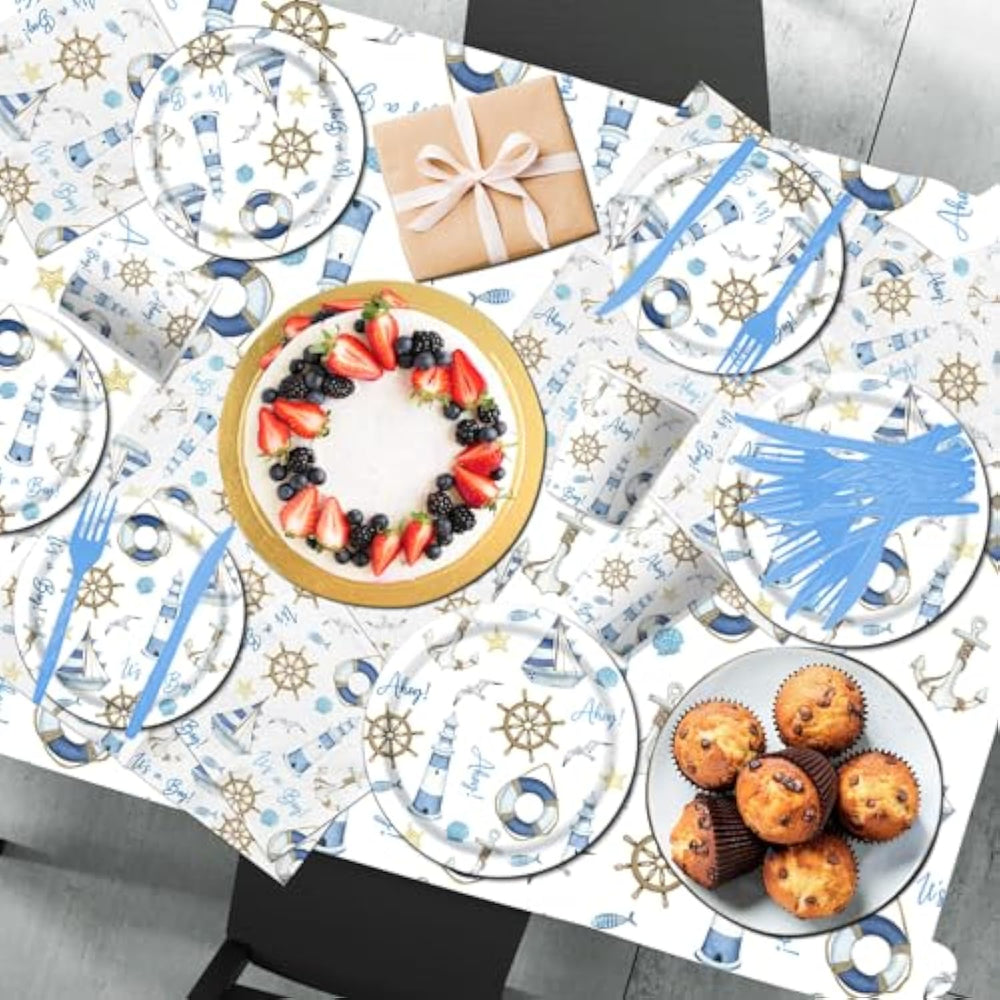 | Ahoy Baby Shower Decorations :The Ahoy Its A Boy Baby Shower Decorations For Boy Dinnerware Set Includes :1Pc"Ahoy It'S A Boy"Banner,1Pc Nautical Baby Shower Decorations For Boy Tablecloth, 20Pcs 9Inch Sailor Plates ,20Pcs 7Inch Paper Plates With Anchors Plates,40Pcs Nautical Baby Shower Napkins And 20Pcs Knives And Forks.Which Can Serve 20 Guests And Meet Your Baby Shower Nautical Decorations.Your Its A Boy Nautical Party Will Be Full Of Happy Atmosphere With These Nautical Baby Shower Table Decorations For Boy | | High Quality:Ahoy Its A Boy Paper Plates And Napkins Cups Supplies Are Made Of Paper,Reliable And Safe To Use And The Its A Boy Theme Tablecloth Is Made Of Plastic.The Patterns And Colors Are Beautifully Printed And Do Not Fade, Providing You Baby Shower Theme Party For Boy Full Of Lively Atmosphere | | Save Time:Our Sailor Decorations For Baby Shower Tableware Reduces Cleanup Time, So You Can Enjoy More Time With Friends And Family. All You Need To Do After The Baby Shower Party Is To Throw Away These Nautical Baby Shower Party Supplies Along With Sailor Tablecloth, Which Is Very Convenient. Make You Fall In Love With Throwing Parties! | | Widely Used:Nautical Baby Shower Plates And Napkins Set Is The Wonderful Nautical Baby Decorations For Boy.You Can Use It As Baby Shower Sailor Decorations.Anchor Theme Baby Shower,Baby Sailor Decorations,Ahoy Its A Boy Decorations,You Will Definitely Surprise Your Guests With These Elegant And Classy Designs In Any Occasions And Formal Events.Creating A Wonderful Time For You And Your Friends And Family! | | Service:Please Buy With Confidence. If You Are Dissatisfied With Our Baby Shower Decorations Boy Nautical Dinnerware, Please