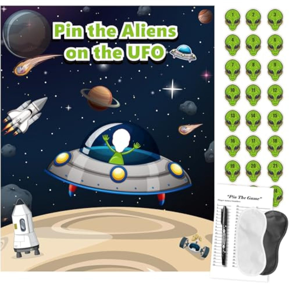 | If You Are Still Worried About The Lack Of Fun At The Kids Birthday Party, Then Come And See This Space Alien Theme Party Games! This Is A Perfect Game To Liven Up Your Space Party Activities. Your Party Will Be Filled With Fun, Laughter And These Will Be A Hit! | | Space Party Supplies - Includes Large Poster (20.5 X 28.3 Inch), 2 Pcs Blindfold, Stickers For 24 Guests, 6 Pcs Adhesive Tape. | | How To Play - Paste The Poster On The Wall With Adhesive Tape, Then Wear The Eye Mask, Turn Three Times, Take A Sticker And Pin It On The Poster, Who'S Closer To Who Wins. | | Outer Space Party Decorations - Sticker Has Numbers That Can Help You Track Who The Team Members Are. It Is Perfect For Holiday Celebrations And Birthday Party, Which Also Great As The Party Gifts For Your Kids And Can Be Used As Room Decoration, Home Decoration And Wall Decoration. | | Your Satisfaction Is Our Priority - Poster Sticker Made Out Of Glossy Paper Stock, Ring Hand Reusable. Contain Adhesive Tape, Which Can Be Used To Stick Posters Anywhere, Hope It Helps You Create A Fun And Memorable Party. | |