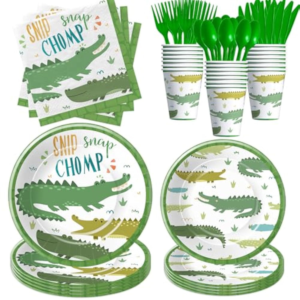 | ?Alligator Birthday Decorations?Our Crocodile Birthday Party Decorations Tableware Features Charming Alligator-Themed Designs That Bring A Playful Touch To Any Celebration. From Friendly Alligator Faces To Vibrant Green Hues, Every Detail Is Sure To Delight Both Kids And Adults Alike | | ?What Will You Get?Our Alligator Party Supplies Tableware Set Included 24Pcs 9'' Alligator Dinner Plates, 24Pcs 7'' Crocodile Dessert Plates, 24Pcs Napkins, 24Pcs Cups, 24 Sets Of Cutlery, For Reptile Animal Theme Alligator Table Decorations | | ?Applicable Occasions?Whether You'Re Hosting A Birthday Party, Baby Shower, Or Any Other Special Occasion, This Tableware Set Is Perfect For Any Reptile-Themed Celebration. Mix And Match With Other Decorations And Party Favors To Create A Custom Look That Perfectly Suits Your Event | | ?Easy To Clean?The Alligator Birthday Party Decorations Tableware Kit Makes Them A Convenient And Cost-Effective Option For Gatherings. Plus, They Are Disposable, When The Party Is Over, Simply Toss Them In The Trash For Easy Cleanup, And You Can Spend More Time With Friends And Family, Saving You Time | | ?Quality Materials?Made From Premium Paper, These Party Decorations Set Is Sturdy Enough For Party Treats And Built To Handle Festive Fun | |