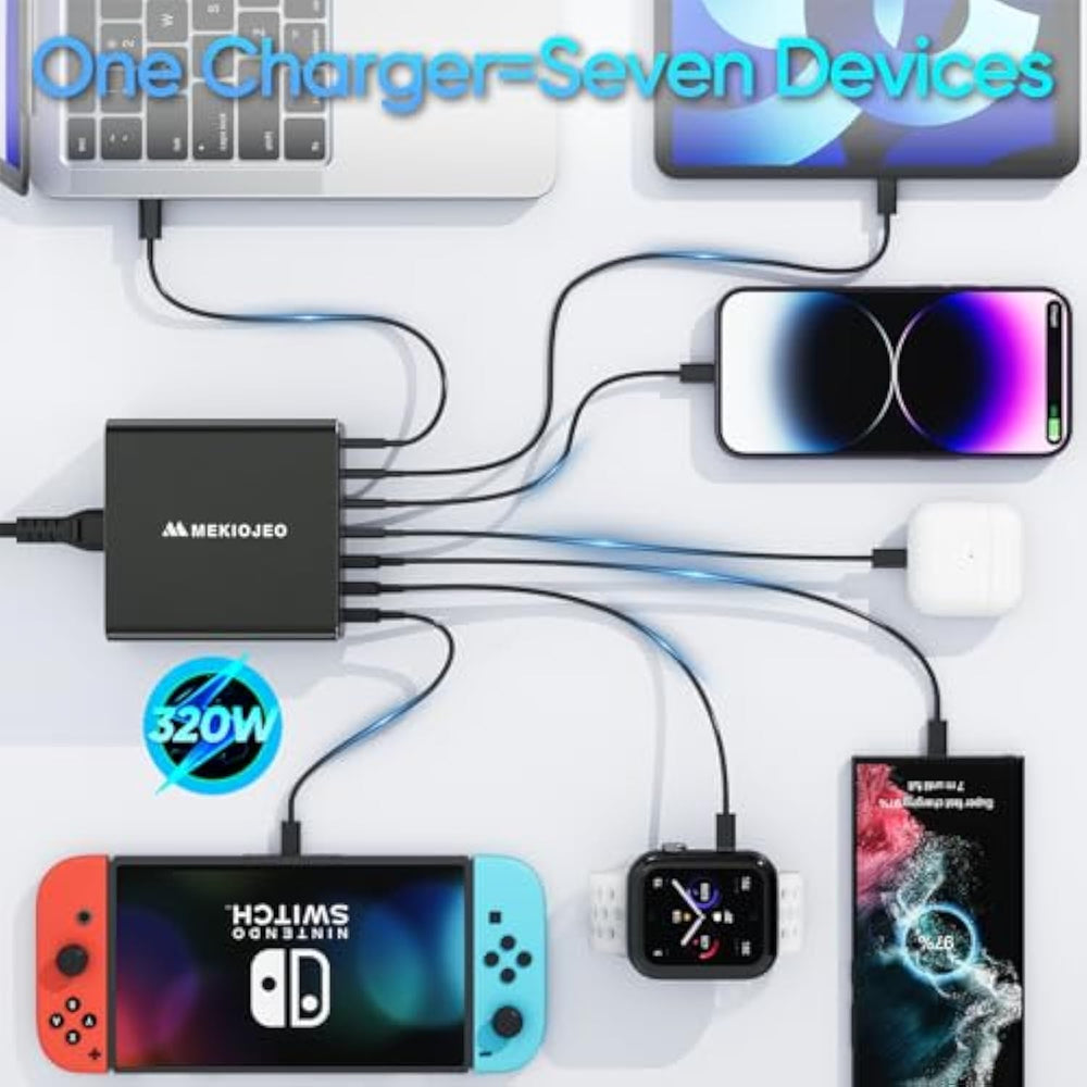| 7-In-1 Usb C Charger: This Usb C Charger Block Provides 7 Charging Wattage Options With 4 Usb-C Ports And 3 Usb-A Ports. Such A Usb C Multiport Charger Can Handle All Your Devices At Fast Speed. | | Sleek Usb C Charger: Usb C Charging Station Is Finished With Anti-Slip Aviation Aluminum Alloy Shell, So Even You Plug In Multiple Devices It Can Stand On The Desktop, Dresser And Nightstand. It Won'T Move Or Flip Easily Than Those Of Cheap Plastic Outer Shell. No More Hunting For Outlets Or Lugging Around A Bunch Of Chargers When Travel, Much Simplify Your Life. | | Multiport Usb C Gan Charger: Say Goodbye To Tangled Cables And Messy Clutter. This All In One Type C Charger Fast Charging Significantly Meets Your Daily Charging Needs. 65W Port Can Act As A Usb C Laptop Charger To Power Your Laptops Like Macbook Pro/Air Etc. Extra 3 Options Like 30W, 20W And 15W Are Strong Enough To Fast Charge Iphone 14 Pro, S23 Ultra, Ipad Pro And More At The Same Time Without Anything Overheating! | | 7 Multiprotect Safety Systems: Our Usb C Charger Block Is Equipped With Enhanced Surge Protector: Temperature Protection, Over-Current, Over-Voltage, Overcharge, Overload, Overheat And Short Circuit. The Certification Authority Of Our Usb-C Charger Is In Line With Safety Tests, Ensuring 100% For You And Your Device'S Protection. | | Compact Versatile: This Usb C Gan Charger Is Smart By Automati