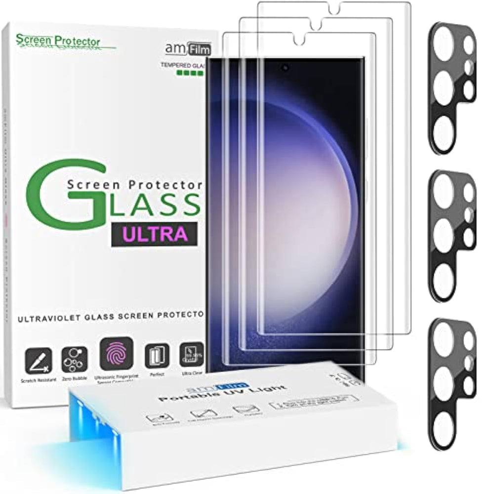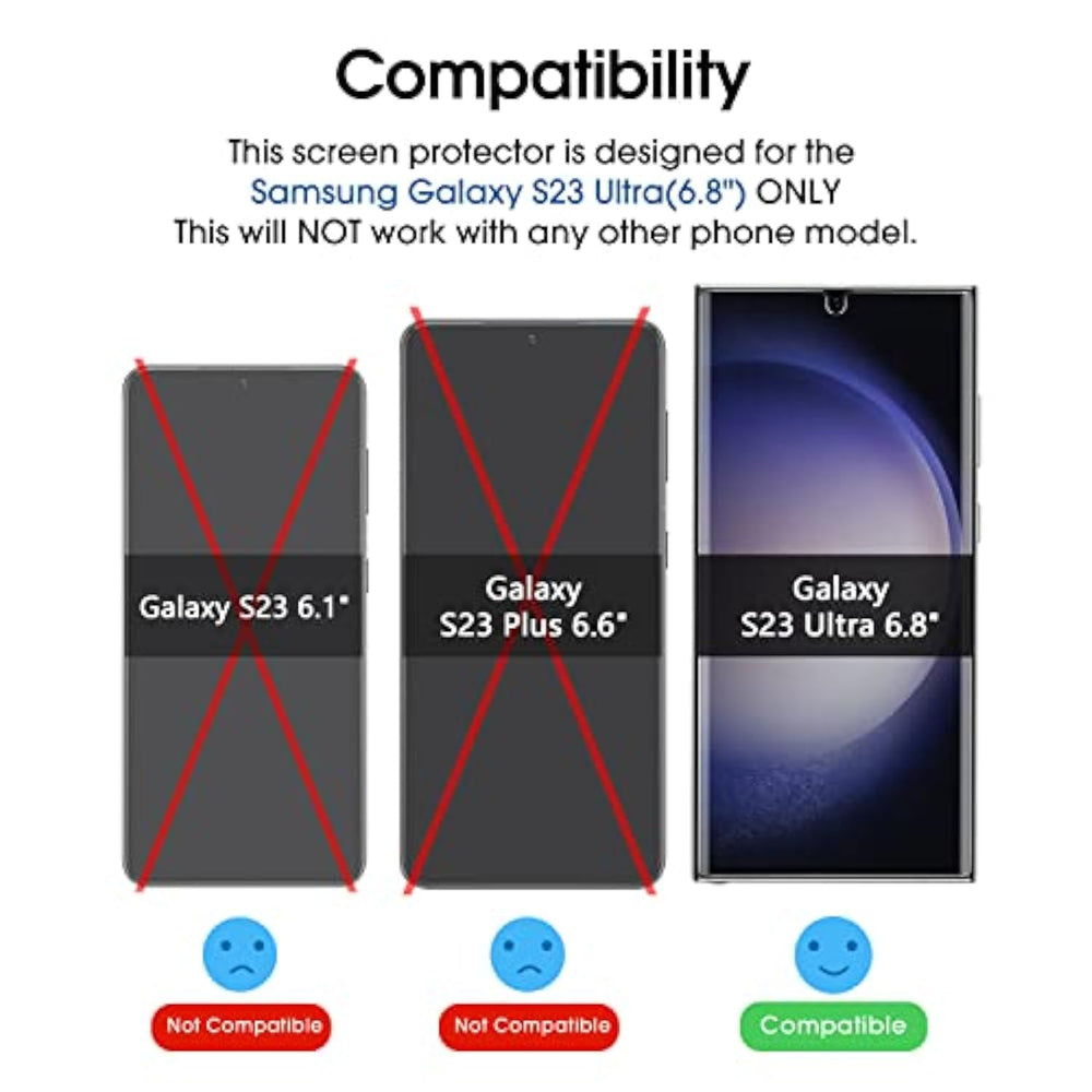 | ?Fully Compatible with UltraSonic Fingerprint Scanner? Unlike any alternative on the market, this Samsung Galaxy S23 Ultra glass protector will work fully with the Ultrasonic Fingerprint Scanner. Simply re-scan your fingerprint AFTER application. | | ?Upgraded Installation Tray?Compared with other Installation trays, we made absorbent pads and bubble levels on the Installation tray, simplifying the installation steps and making the installation easier. DO please test the UV light before installation. | | ?3D Curved Glass Full Compatibility Touch Sensitivity?This protector covers the rounded edges of the S23 Ultra with fine finished oleophobic coating to reduce fingerprints and provides your S23 Ultra scratch resistance, 99.9% ultra-clear high definition transparency, drop protection and full compatibility with touchscreen sensitivity. | | ?Installation video and Manual? This package comes with all components needed to get a perfect installation, including a detailed application manual (with pictures) and a demonstration video. Please watch our installation Video at least once before installation (available on this webpage and manual). | | ?Shop with Confidence? We offer round-the-clock