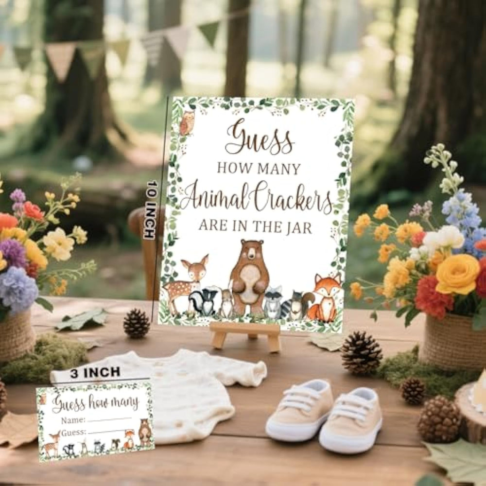 | ?Exquisite Design?:The Animal Baby Shower Decorations Are Designed In The Theme Of Guess How Many Animal Crackers, And Printed With Relative Words And Patterns, Delicate And Adorable, Creating A Warm And Joyous Atmosphere. | | ?High Quality?: The Animal Baby Shower Decorations Are Made Of Quality Cardboard, With Clear And Vivid Printing, Sturdy And Serviceable, Which Are Not Easy To Fade And Deform Or Break For Long Term Use. | | ?Perfect Keepsake?: Beyond Its Use During The Baby Shower, This Game Card Serves As A Perfect Decoration Piece, Adding A Rustic And Charming Touch To The Event. It Later Becomes A Cherished Memory Holder That Encapsulates The Joy Of The Celebration. | | ?Package Included?: The Package Includes 1 Standing Sign And 50 Guessing Cards. Unframed Prints. Which Can Be Put Into Use In Combination To Provide You With Both Decorative And Practical Functions. | | ?Satisfaction?: If You Have Any Questions Or Problems, Please Feel Free To