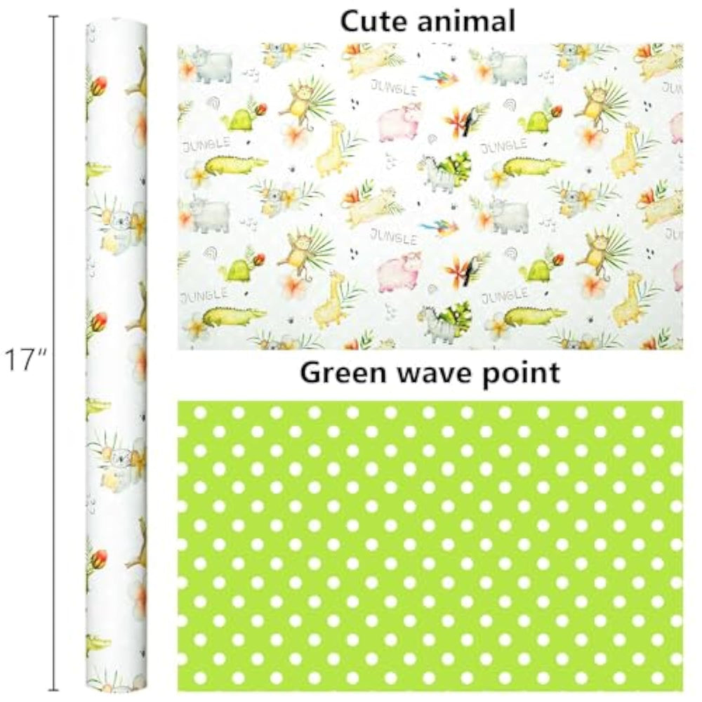 Double-Sided Wrapping Paper: One Side Has Giraffe, Elephant, Hippopotamus, Turtle, Bird, Sloth, Zebra, Monkey Animal Element Design, And The Other Side Is A Green Polka Dot Design, Making Your Gift Wrap Both Fun And Cute | Mini Roll: This Wrapping Paper Roll Is 17 Inches (43 Cm) Wide And 32 Feet (10 M) Long, Giving You A Total Of 46.5 Square Feet Of Paper. It’S Perfect For Small To Medium-Sized Gifts. Just Double-Check The Size To Make Sure It Fits Your Gift Before Ordering | Premium Quality: Made From High-Quality, Thick Paper That’S Durable And Hard To Tear. Each Roll Comes Wrapped In Shrink Film To Protect It From Scratches And Dust | Premium