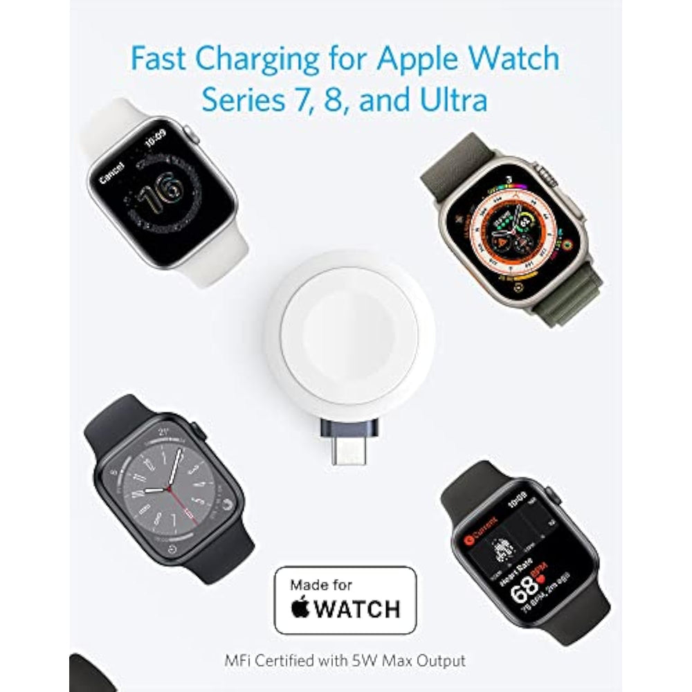 | The Anker Advantage: Join the 55 million+ powered by our leading technology. | | Zero Cables: Plugs directly into any USB-C charging port to power up Apple Watch Series 1 to 8 / Ultra / SE. | | MFi Certified: Confirmed to work smoothly and safely with any Apple Watch. | | Compact and Portable: The extremely compact and simplified design offers great portability for a wireless and tangle-free Apple Watch charging experience. | | What You Get: Anker Portable Magnetic Charger for Apple Watch, welcome guide, 18-month , and friendly