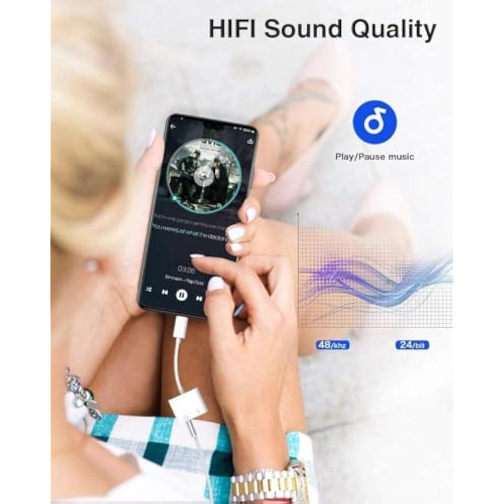 | ?Iphone Charger And Aux Adapter? 2-In-1 Lightning To 3.5Mm Headphone Aux Audio And Charger Adapter Cable Support You To Enjoy Perfect Music While Charging, Just Enjoy Yourself Without Worrying About Running Out Of Power. | | ?Universal Compatibility? This Iphone Adapter For Headphone Jack Is Compatible With Iphone 14/14 Plus/14 Pro/14 Pro Max/13/13 Mini/13 Pro/13 Pro Max/12/12 Mini/12 Pro/12 Pro Max/11/11 Pro/11 Pro Max/Se 2020/Xs/Xs Max/Xr/X/8/8 Plus/7/7 Plus/6S/6S Plus/6/6 Plus. Also Support Wired Headphones/Car/Home Stereo Or 3.5 Mm Speakers Function To Enjoy Music Or Movies. | | ?Multi-Function Dongle For Iphone? The Lightning To 3.5Mm Audio Jack Adapter Supports Adjusting Song Previous, Pause, Next Function, Fast Charging, Headphone Control, Data Transfer. Please Note: This Iphone Headphone Adapter Does Not Support
