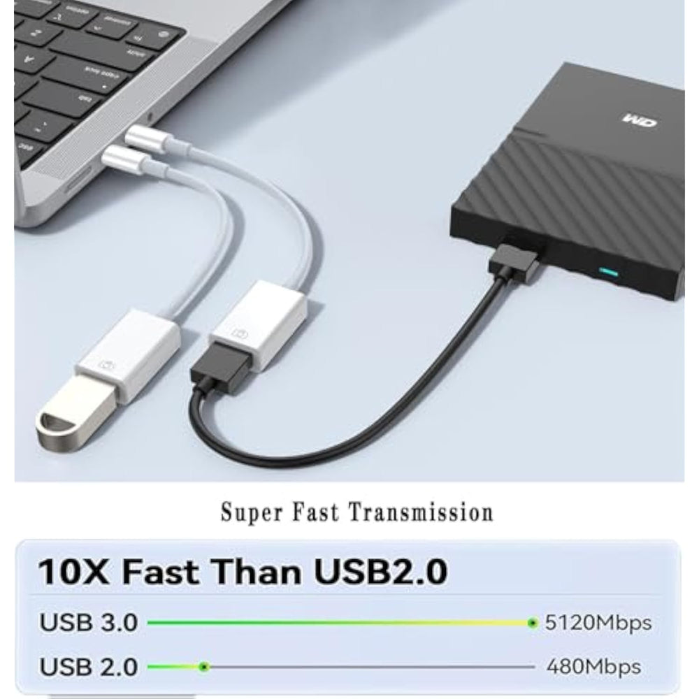 | Upgraded Version: This Iphone Usb-C To Usb Camera Adapter Support Usb 3.0, Transmission Speed Up To 5Gbps, And It Also Support Usb 2.0, The Transfer Speed Is 25Mb/S-30Mb/S Which Is 2 Times Faster Than Others, Help You Save Time. | | Plug Play: Easy To Use, No Need To Download App. No Need To Use Pc Anymore, Share Your Photos And Videos From Your Camera To Your Social Network And Friends Freely! | | Widely Compatible: This Ios Usb Otg Converter Compatible With Iphone 16, 16 Pro, 16 Plus, 16 Pro Max, 15, 15 Pro, 15 Plus, 15 Pro Max, Ipad Air 4, Ipad Air 5, Ipad Mini 6, Ipad Mini 7, Ipad Pro (With Usb-C Port). Support Ios 9.2 And Later Version. | | Support Peripherals: Usb Female Otg Data Sync Cable Also Can Be Widely Use For More Usb 3.0 Device, Such As Digital Camera,Card Reader,Usb Flash Drive, Midi Keyboard, Mouse, U Disk, Hubs, Electronic Piano, Drum, Audio Interface, Mixer, Usb Microphone Etc. | | Tips: Please Don'T Worry If The No Any Dispaly When Your Plug Your U Disk Or Camera. Just Find "Files" On The Desktop Click "Browse" Then You Can See The U Disk On Your Iphone. | |