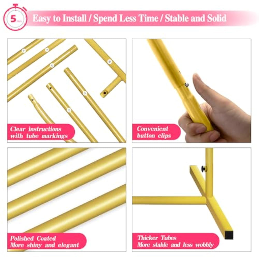 | Sturdy Material Size: 6.6Ft X 3.3Ft(H X W). It Will Help Save Your Money From Always Having To Rent Arches And Backdrops! Such A Game Changer! Arch Background Stand Is Coated With Light Gold Anti-Rust Paint, Ensuring Long Lasting Durability. We Use Rotary And Push Buttons To Secure The Pipe Connections, Which Is Easier And Faster Than Other Metal Arch Frames More Secure To Use, It Can Be Used Many Times And Easy To Carry. | | Easy To Install: The Wedding Backdrop Stand With Stronger Stability Has Higher Bearing Capacity. Easy To Assemble Or Disassemble Wedding Arches For Ceremony In 5 Minutes By Single Person. We Provide A Good Quality Pouch For Storage. Convenient To Carry And Store. | | Creative Decorations: You Can Decorate Metal Arch Backdrop Stand With Wedding Arch Cover, Flowers, Balloons, Greenery, Tulle, Led Lights And Garlands To Forge Wonderful And Personalized Backgrounds. No Matter What Style You Appreciate, Utilize Your Creativity With A Variety Of Decorations To Create Wonderful Arch Backdrop For Your Events. | | Multiple Applications Reusable: Metal Wedding Arch Backdrop Stand Can Be Applied And Moved Indoors, Outdoors Or Anywhere As You Like To Satisfy Various Needs And Saving More Money For You. Arch Stand Can Be Use For Wedding / Party / Reception / Anniversary / Shop Opening Ceremony / Graduation Party Decoration / Commercial Celebration / Party Photo Booth. | | Excellent Service: We Always Aim To Offer Good Products And Excellent Service. Note: Decorations Are Not Included In The Kit. | |
