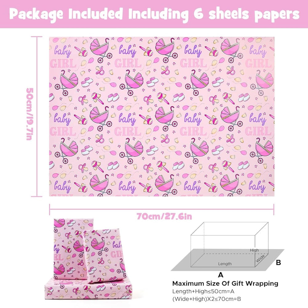 | ???? Baby Girls Design: This Birthday Wrapping Paper Set Comes With A Lovely Baby-Style Design Containing Stroller Baby Socks And Nipple Balloons Printed On Pink Art Paper, Universal Design Is Also Perfect For Holiday Party Wrapping Paper, And Definitely Brings You A Strong Visual Impact And Impresses Each Child. ?? High Quality: 80Gsm Pink Wrapping Paper, Created With High Quality Art Paper Materials, Thick Enough That It Doesn'T Rip On Corners But Not Too Thick And Hard To Work With. ?? Perfect Size: Each Paper Sheet Is 20 X 28 Inches, It Is Large Enough To Wrap Different Sizes Of Gifts From Small To Medium To Jumbo; It Is Folded Into 1/4 Size And Sealed In Bags For To Prevent Damage. ?? Great Value Pack: The Package Includes 6 Large Sheets Gift Wrapping Paper. Enough To Meet Your Individual Requirements For A Wrapped Gift. ?? Widely Applications: The Lovely Designs Make This The Perfect Baby Gift Wrap For A Baby'S Birthday, Baby Shower, Children'S Day, Kids Crafts, Diy Decorations, Congrats, Easter, Christmas, Holidays, Home Decoration And More. Sure To Make Your Gifts Stand Out On Any Occasion. ?? Kindly Reminder : The Birthday Wrapping Paper Is Folded When Delivery. The Crease Is Unavoidable. Please Use Scissors Carefully To Cut The Packet. If You Are Not Satisfied After Receiving It, Please Feel Free To