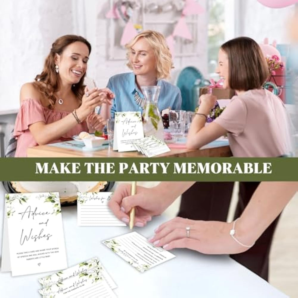 | Advice And Wishes For Parents-To-Be (Greenery): A Charming Way To Collect Advice For Parents Baby Shower Guests Can Write On—Perfect For Greenery Baby Shower Decor And Memory Keepsakes. | | Set Include: Features Beautifully Designed 4X6 Inch Advice For Parents To Be Baby Shower Cards, Advice Cards For New Parents, And Baby Advice Cards For Baby Shower Wishes. | | Gift Idea: A Meaningful Gift For New Parents, Ideal For Baby Shower Items, Advice And Wishes Box, Or A Thoughtful Addition To Baby Shower Ideas. | | High Quality: Made With Premium Greenery-Themed Cardstock—Perfect For Baby Shower Wishes Cards, Advice Cards, Or A Baby Shower Keepsake Guests Will Enjoy Filling Out. | | Careful Packaging: Each Card Is Carefully Packed To Keep Them Flat And Clean, Ready For Baby Shower Activities For Guests And Lasting Memories. | |
