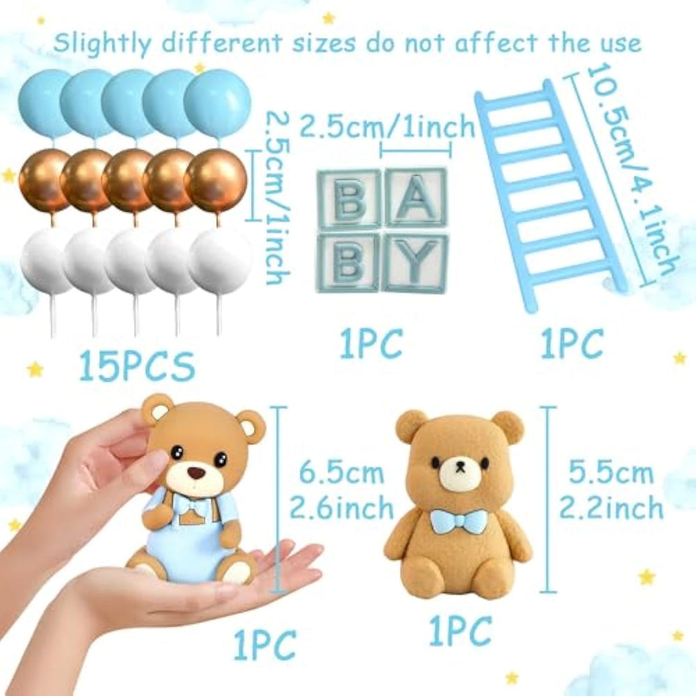 | This Cute Bear Cake Decoration Set Contains 19 Exquisite Accessories?Wedding Desserts And Christmas Dinners To Create A Warm And Childlike Festive Atmosphere. | | Baby Shower Cake Decorations: You Will Get 1 X Set Of [Baby] Cake Topper, 1X Small Ladder, 1X Big Bear 6.5 Cm/2.6 Inches, 1X Small Bear 5.5 Cm/2.2 Inches, 5X Light Blue Cake Balls, 5X White Cake Balls, 5X Gold Cake Balls | | Bear Decoration:Reuse.Safe And Harmless, With A “We Can Bearly Wait” Themed Sign, Perfect For Baby Gender Reveal Parties And 100-Day Banquets To Make The Dessert Table The Focus. | | The 19 Bear-Themed Decorations Can Be Quickly Set Up Without Tools, Suitable For Graduation Cakes And Picnic Cupcake Scenarios To Add A Vivid Sense Of Ceremony To Sweet Moments. | | If You Have Any Problem, Please Let Me Know. For More Products, Please Visit . | |