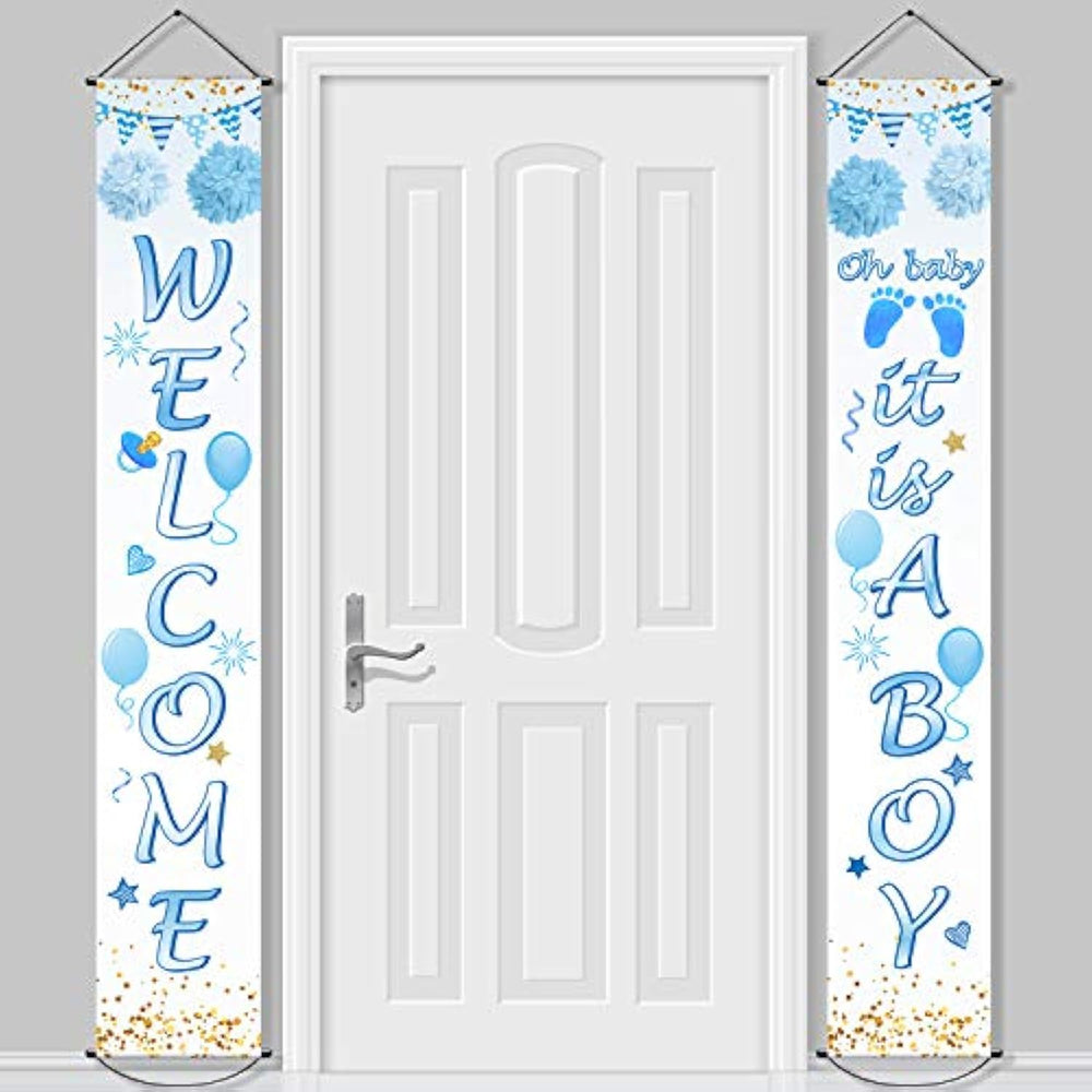 | Durable Material: The "Welcome" Hanging Porch Sign Banner And The "It’S A Boy" Hanging Porch Sign Banner Are Made Of Quality Polyester, Which Can Serve For A Long Time Use; They Are Light Weight, Washable, Tear-Resistant And Easy To Carry | | What You Will Get: Comes With 1 Piece "Welcome" Hanging Banner And 1 Piece "It’S A Boy" Banner, Vibrant To Complete Your Baby Shower Party Decorations; No Assemble Needed And They Are Easy To Hang, Save Your Time And Energy To Decorate | | Vivid Design: Designed With Balloons, Pennants, Pacifier, Fireworks, Footprint, Confetti And "It’S A Boy" Saying Accents, Ideal For Baby Shower Party; The Well Designed Words Are Eye-Catching And The Blue Theme Design Is Filled With Pleasant Celebration Atmosphere And Precious Meaning Of Welcoming A Baby Boy, Which Can Add Extra Touch To Your Party And Leave A Deep Impression On Your Guests | | Proper Size: The Porch Sign Banner Is 71 X 12 Inches/ 180 X 30 Cm, Large And Long Enough For Baby Shower Party Decorations; You Can Use Them To Decorate Door, Wall And More, Conspicuous For Photography With Family And Friends, Help To Build Impressive Memory | | Wide Applications: These Welcome Banner And It’S A Boy Banner Can Be Applied As Door Decoration Or Photo Props; You Can Take Beautiful And Memorable Photos Or Selfies; These Banners Help To Boost Memorable And Pleasant Atmosphere Of Baby Shower Party, Make You And Your Friends More Joyful To Enjoy The Party | |