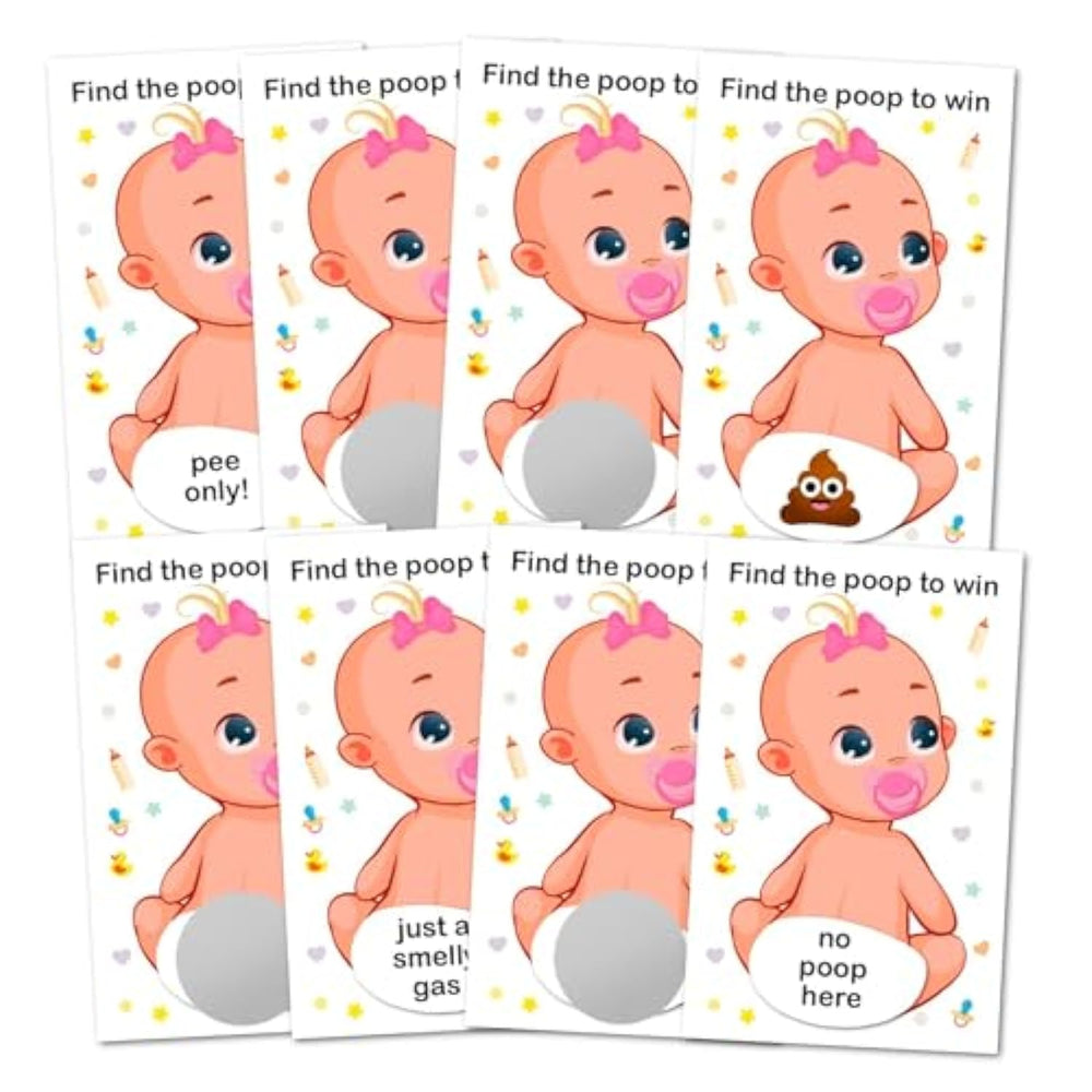 | Hilarious And Interactive Baby Shower Game For All Ages – Get Ready For Endless Laughter With This Fun Scratch-Off Poop Game, The Perfect Addition To Any Baby Shower! Guests Will Love The Suspense As They Scratch Their Cards To See If They Have The "Poopy" One. It’S A Lighthearted, Entertaining Game That Keeps Everyone Engaged And Makes Your Celebration Even More Memorable. | | Easy-To-Play, No-Prep Party Fun For Busy Hosts – No Complicated Setup Required! Simply Stick The Scratch Off Stickers, And Hand Out The Scratch-Off Cards To Guests And Let The Fun Begin. The Excitement Builds As Everyone Scratches To Reveal Their Surprise, Making It An Effortless Yet Highly Entertaining Activity. Ideal For Baby Showers, Gender Reveals, And Family Gatherings. | | Adorable And Unique Design To Match Any Theme – These High-Quality Scratch-Off Cards Feature A Cute And Playful Design That Fits Seamlessly Into Any Baby Shower Decor. Whether You’Re Hosting A Boy, Girl, Or Gender-Neutral Shower, This Game Adds A Whimsical And Charming Touch To Your Party Setup While Keeping Guests Entertained. | | Premium-Quality, Durable Cards For A Luxurious Feel – Made From Thick, High-Quality Cardstock With A Professional Scratch-Off Surface, These Game Cards Are Designed To Look And Feel Premium. They Won’T Easily Bend Or Tear, Ensuring A Smooth Scratching Experience For All Guests. A Fun And Well-Crafted Keepsake For Expecting Parents To Remember Their Special Day. | | Perfect Icebreaker And Crowd-Pleaser For Large Or Small Gatherings – Whether You’Re Celebrating With A Few Close Friends Or Hosting A Big Baby Shower, This Game Is A Hit. It’S Suitable For Guests Of All Ages, From Kids To Grandparents, Making It A Great Way To Bring Everyone Together And Create Unforgettable Memories At Your Event. | |