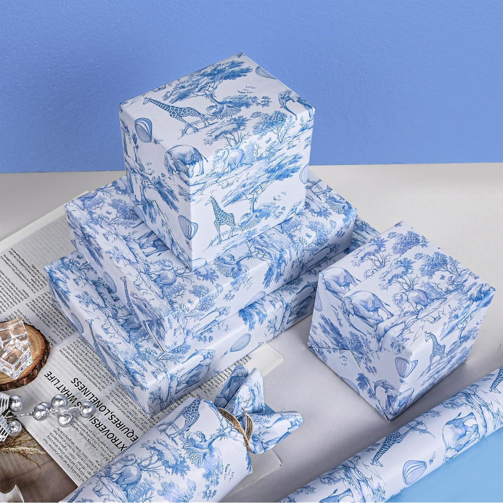 | Blue Retro Design: Our Wrapping Paper Features A Unique And Vintage Forest Woodland Animals Design That Will Make Any Gift Stand Out.These Luxury Wrapping Paper Are Limited Edition And Unique To Make It Easy To Add A Personal Touch To Your Present. Size:Total 17?×20Ft? 6 Identical 17 "X 40" /43 Cm X 100 Cm Pieces Of Paper Can Be Stitched Together To Wrap Large Gifts. High-Quality Paper: Crafted With Durable Paper, This Gift Wrap Offers Excellent Strength And Reliability. Tear-Resistant And Durable, It Ensures Your Gifts Stay Beautifully Wrapped Without Ripping Or Wrinkling. Roll Packaging Form:Roll Wrap, Not Folded, 6 Sheets Stacked Together In One Roll.You Will Receive A Whole Wrapper, Not A Creased One. Versatile Use: Ideal For Wrapping Gifts For Christmas, Holiday, Birthday, Baby Shower, Parties, And More. Loved Its Vibrant Designs, Perfect For Sparking Creativity In Arts And Crafts Projects.