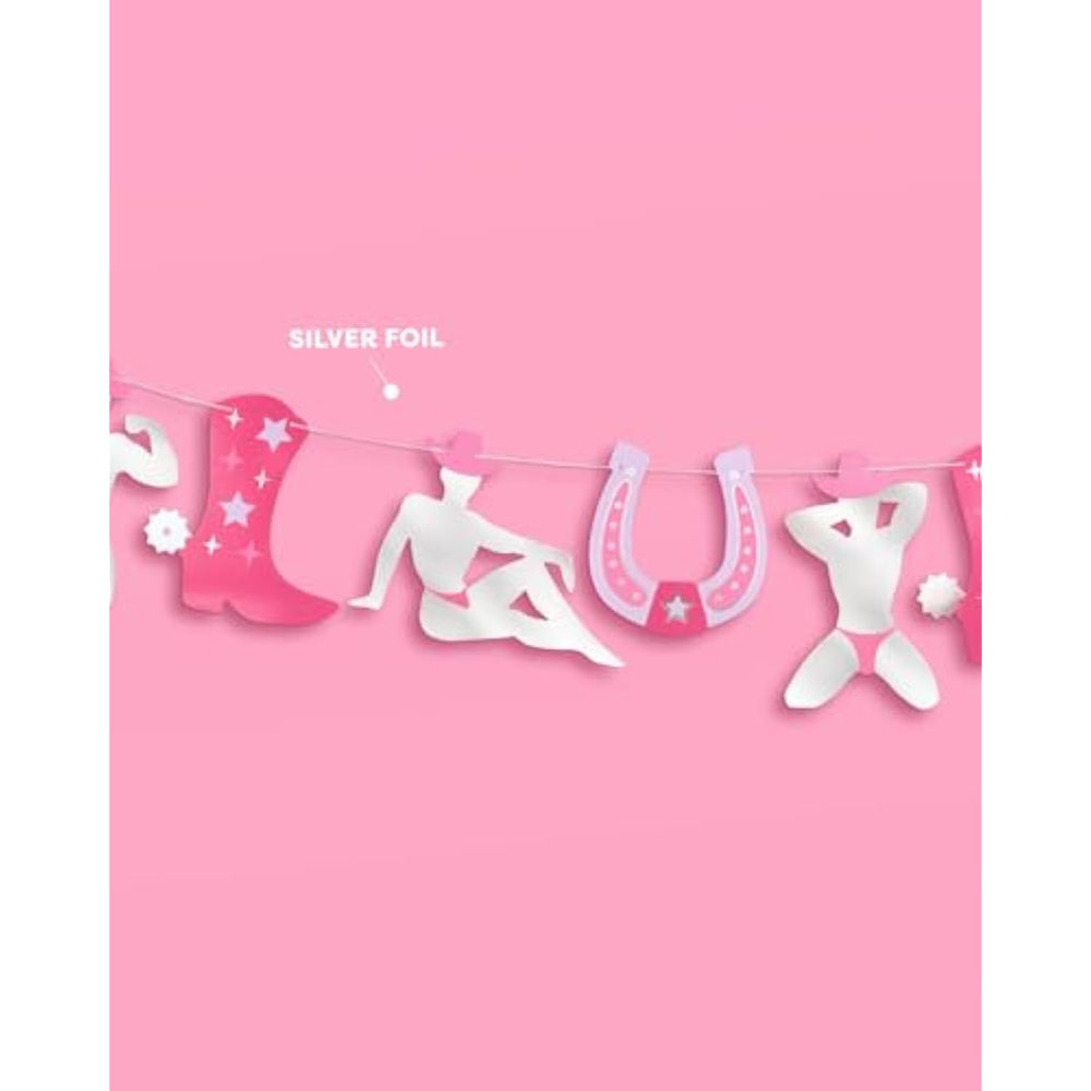 | Last Ride: Our Silver Foil Rodeo Cowboy Dancer Banner Is The Party Addition You'Ve Been Looking For + A Hit! | | Foil Details: Each Banner Features A Silver Paper Finish With Icons Of Male Dancers, Cowgirl Boots, And Horseshoes - Think Super Fun + Sparkly! | | For Every Event: One Size Fits All! Perfect For Any Rodeo Bachelorette, Western Bridal Shower, Or Engagement Party! | | Ready To Party: This Banner Is Pre-Strung On One String And Ready For Action! | | Size: Each Set Comes With One Banner With Icons And Spans 3 Feet Total. | |