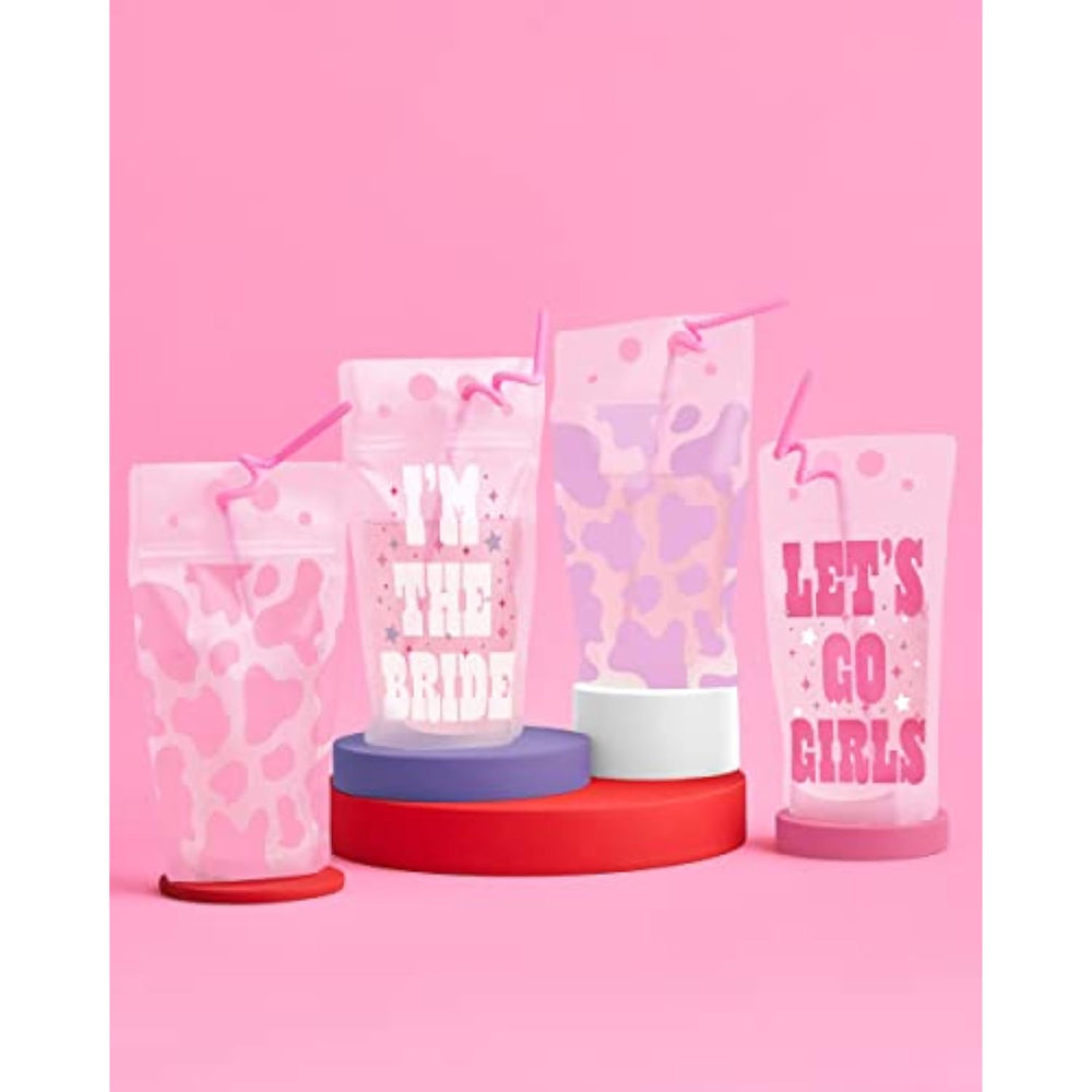 | Yeehaw: Our 16 Pack Rodeo And Cow Print Drink Pouches Are The Bach Party Addition You'Ve Been Looking For + A Hit! | | Squad Approved: Have Fun Celebrating With These 4 Nashville Inspired Designs! Each Order Comes With 1 Pc "I'M The Bride" + 5 Pcs Each Of "Let'S Go Girls", Pink Cow Print, And Purple Cow Print. | | Spill Proof: Say Goodbye To Spills With Our Resealable Pouches; Each Pouch Comes With A Pink Straw :) | | Getting Rowdy: Get Ready To Use These Pouches Again + Again! They'Re Made Of Durable Bpa-Free Material And Can Hold Up To 15 Oz Of Your Drink Of Choice! | | Cute Stuff Inside: And Outside, Too! Every Set Comes Gift-Ready For Your Favorite Bride-To-Be'S Bach Party! | |